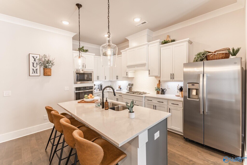 Not all Clift Farm townhomes are equal. This premium end-unit features more windows,more light,+ designer upgrades you won't find in other units: engineered hardwood in all main living + the master,quartz countertops,a seamless glass shower,a luxury soaking tub,a fireplace,wainscoting,architectural trim details,and stainless steel appliances + refrigerator. Private 2-car garage. Private patio. In-unit washer/dryer included. Resort pool,fitness center,clubhouse. Two-minute walk to Starbucks,Publix,and Chick-fil-A. Minutes to Redstone Arsenal Gate 7 and Cummings Research Park. Madison City Schools. The owner is a licensed realtor.