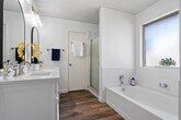 Beautifully updated 3-bedroom, 2.5-bath home with modern finishes throughout. Enjoy easy-care living with no carpet anywhere, new bathroom vanities, and updated lighting throughout. The open floorplan provides flexible living and dining areas filled with natural light. Split from the other bedrooms and tucked at the rear of the property, the primary suite has two sinks, a soaking tub, separate shower and spacious closet. Upstairs features two spacious bedrooms and a bath. Parking includes an attached one car garage and rear driveway wide enough for two cars. The rental includes a washer and dryer for tenant use and lawn care every other week. Tenant to provide their own refrigerator. Conveniently located near shopping, dining, and major commuter routes. Managed by a small responsive local management company. Applicants must make three times the rent (verifiable), have few (if any) late pays, and no collections or recent criminal history. Application fee is $75 per person over 18. Online application link provided upon request from listing agent. Landlords prefers an 18 month lease or longer.