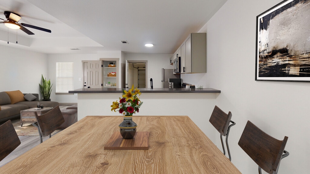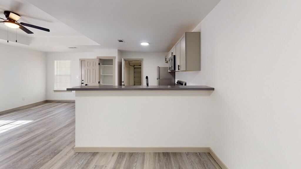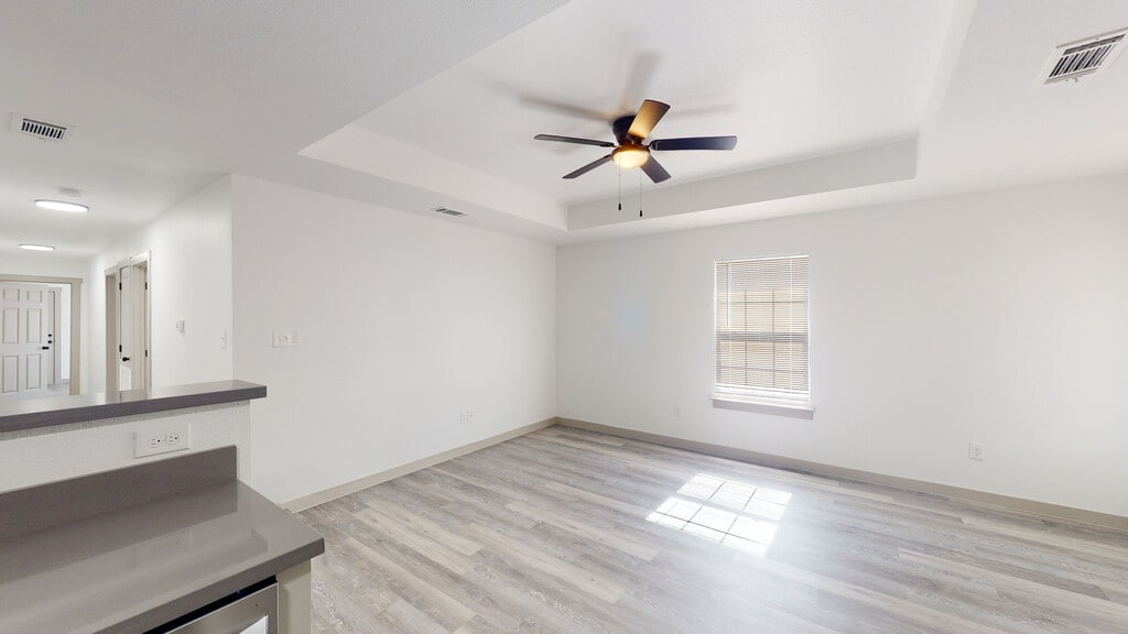 Welcome home for the holidays to this stunning 3-bedroom, 2-bath luxury duplex that blends modern design with everyday comfort. This nearly new home features a spacious open-concept floor plan that’s perfect for entertaining family and friends. Step inside to find a bright living area with a tray ceiling, stylish finishes, and an inviting atmosphere. The chef-inspired kitchen includes stainless steel appliances—refrigerator, range, dishwasher, and microwave/vent hood—plus a separate pantry and an extra-large coat/utility closet for added storage. The primary suite offers a true retreat with a huge walk-in closet, private en suite bath, and direct access to the covered back patio—ideal for unwinding at the end of the day.
