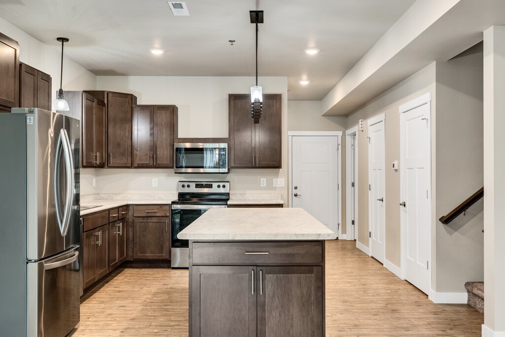 324 Panther Pass West, West Salem (Middle Unit) Luxury Townhomes in Greenfield are beautifully crafted and ready to become your new home. Located in the newly developed Greenfield Addition, West Salem, WI. A family friendly safe neighborhood located near the schools. Each unit is designed with an open concept and features 3 bedrooms and 2.5 bathrooms. Each master bedroom includes a master bathroom and walk-in closet. These homes feature 9-foot ceilings and luxury finish details including premium flooring and cabinetry. Appliances include stove, refrigerator, dishwasher, washer & dryer hook ups. Each home has a patio door and outside patio with privacy fencing and a 2-car attached garage. Non-Smoking. Pet Friendly With Deposit. Lawn care, snow removal, garbage and recycling included. High speed internet available • Second floor master bedroom with master bath and walk-in closet • Second floor bedroom 2 • Second floor bedroom 3 • Second floor full bath • First floor 1/2 bath • First floor laundry • Entry Coat Closet • Washer/Dryer Hook ups • Attached Garage • Private patio • Exterior timed security lighting Luxury Townhomes in Greenfield are beautifully crafted and ready to become your new home. Located in the newly developed Greenfield Addition, West Salem, WI. A family friendly safe neighborhood located near the schools. Each unit is designed with an open concept and features 3 bedrooms and 2.5 bathrooms. Each master bedroom includes a master bathroom and walk-in closet. These homes feature 9-foot ceilings and luxury finish details including premium flooring and cabinetry. Appliances include stove, refrigerator, dishwasher, washer & dryer hook ups. Each home has a patio door and outside patio with privacy fencing and a 2-car attached garage. Non-Smoking. Pet Friendly With Deposit. Lawn care, snow removal, garbage and recycling included. High speed internet available
