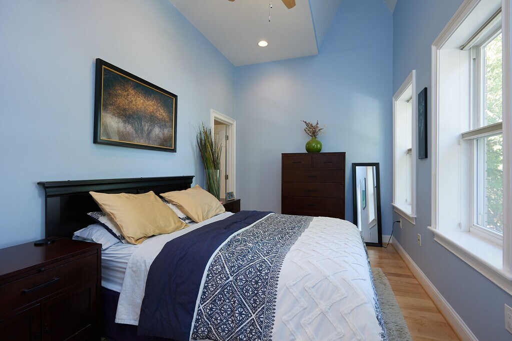 Completely Renovated and Expanded, sunny home just off Grant Circle. Hardwoods on 1st and 2nd level, tile in the lower level. Light and flexible main level, kitchen has an island and stainless steel appliances. Gas range, lots of cabinet space. Living room with gas fireplace. Powder room on the main level. Upper level features skylight allowing great light in, primary bedroom suite with cathedral ceiling. 2 other spacious upper level bedrooms with hall bath. Full sized and high efficiency washer and dryer on upper level. Lower level is great for guests or AuPair - 2 separate entrances, bedroom, bathroom, and open living area. Welcoming front porch, lovely deck overlooking rear patio and fully fenced yard. 1 Car Garage with automatic opener. Walk to Metro, shops, restaurants, rec center, parks, public library. Available January 1 for a 1-3 year lease, pets considered on a case by case basis. No smokers