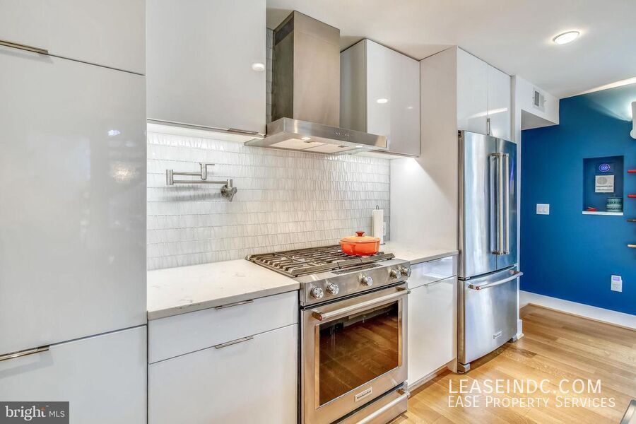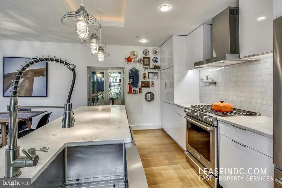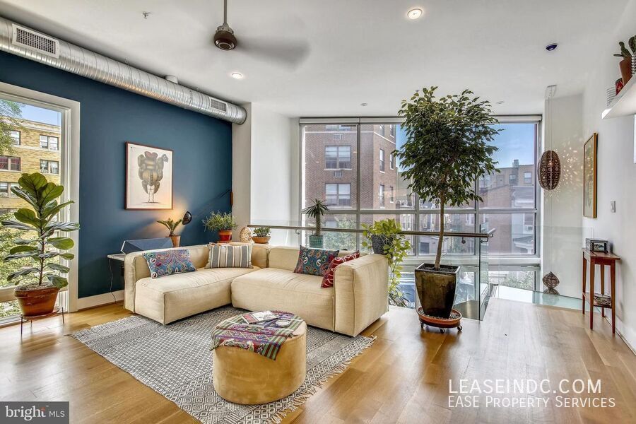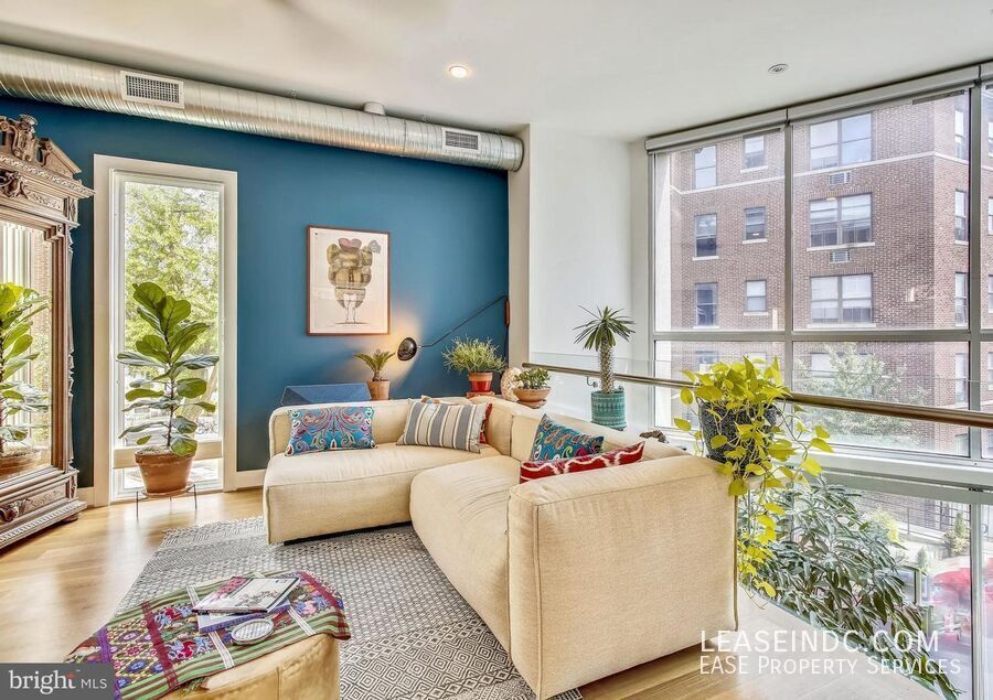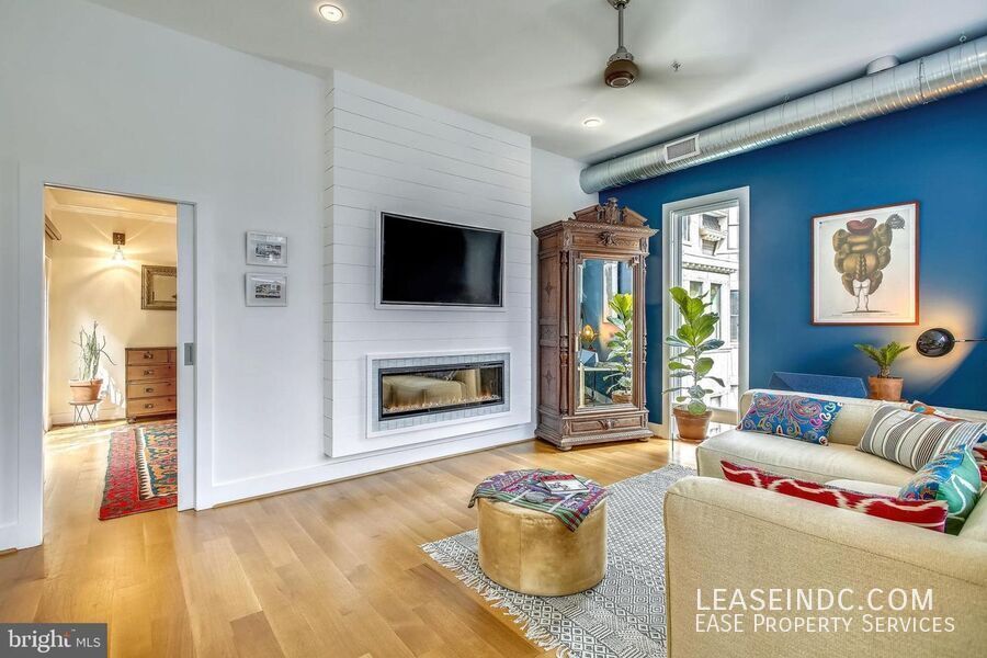 One-of-a-kind luxury two-bedroom plus den, two-bath condo in Columbia Heights! This stunning two-level unit spans 1,300 square feet and has been fully upgraded with top-of-the-line finishes and designer details throughout. From the showstopping glass staircase & floor-to-ceiling windows, to the serene private balcony and included garage parking, every feature has been thoughtfully curated. Sophisticated, modern, and truly unique, this residence has it all! Apartment Features: Two-level layout gives the unit a more townhome-like feel Beautiful hardwood flooring throughout Entry hallway leads to main living area Living room with dramatic 20' ceilings and floor-to-ceiling windows offer endless natural light Gas fireplace on main level and more than enough space for a large dining table The gourmet kitchen has been completely remodeled with stainless steel appliances and a large island First bedroom and modern full bathroom round out the main level Stunning glass spiral staircase leads you to the lofted den w/ gas fireplace and makes for the ultimate bonus space! Huge primary bedroom with large closet and good sized balcony Spa-like primary bathroom with a massive walk-in shower w/ waterfall head Full sized washer/dryer in unit Parking: One assigned garage parking space INCLUDED in rent. Utilities: Tenant is responsible for gas and electric. Water is included in rent. Lease Terms: Available November 1st. Minimum 12 month lease. Application fee is $35 and includes a credit check. Security deposit equal to one month's rent due upon lease signing. Pets considered on a case-by-case basis pending approval by Owner. Tenant is responsible for any applicable building moving fees. Location: Hiatt Place is a small, tucked-away street in the heart of Columbia Heights and just steps away from everything this great neighborhood has to offer. Within two blocks you can walk to the Metro, Giant, Target, Chick Fil A, and so much more on 14th Street.