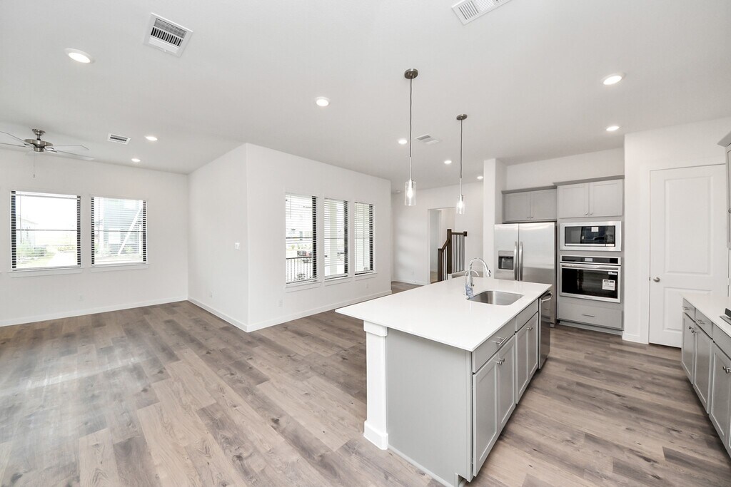 BRAND NEW NEVER LIVED IN! This modern 2-story by Empire Homes offers a thoughtfully designed floor plan that’s cozy yet perfect for entertaining. Front-door facing North featuring 3 spacious bedrooms (1 bedroom down) with generous walk-in closets,3 full bathrooms (2 oversized showers),game room,and 2-car garage. The stunning kitchen includes white quartz countertops,ample gray cabinetry,and stainless steel appliances. Enjoy outdoor living on the front porch or large covered patio overlooking a lush backyard. Upgrades include recessed lighting that provides an abundance of light,vinyl plank flooring for durability & easy maintenance,cordless blinds,ceiling fans,and a sprinkler system. Community amenities feature a walkable neighborhood town center,dog park,farm & pasture,lake,and trails. Conveniently located near Grand Parkway 99 & Highway 90 and major retailers such as Costco,H-E-B,& Target. Available for quick move-in,including Refrigerator,Washer & Dryer. MLS# 65045608