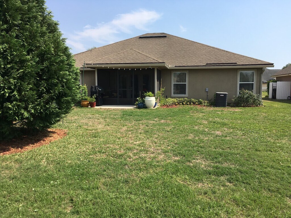This property is not owned or managed by a corporation. It is leased by the owner, who is available and local to handle any problems that could arise. Flora Parke Beauty, great neighborhood, commuting distance to 4 military bases ( Kings Bay Sub Base, Navy Jax, Mayport, and Cecil Field). 3 bedrooms and Office, 2 baths. Property sits on a beautiful lake with breathtaking views. Ceiling fans in all rooms, crown molding throughout, with plantation shutters in the front windows. Property has an alarm system installed, (leaser activated.) Live near the famous Amelia Island, where many come to vacation.