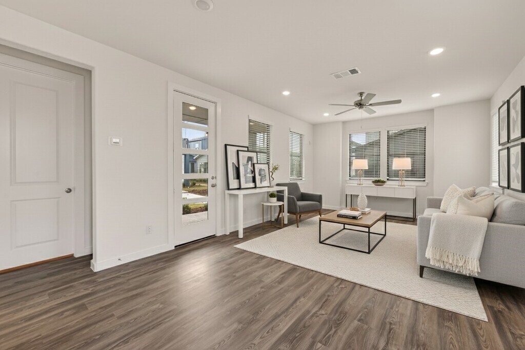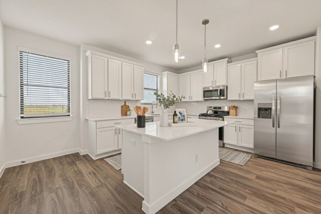 Brand new,never live-in,beautiful 2 bedrooms,2.5 bath home offers an open,light-filled layout with warm finishes and thoughtful design throughout. Upstairs is a huge patio perfect for relaxing or entertaining. This outdoor space feels like an extension of the home and is ideal for morning coffee or evening wind-downs. Enjoy a community built around nature,a community farm,lake activities,and Indigo Commons with shops,dining and neighborhood events just steps away. Zoned to top-rated Fort Bend ISD and ideally located near Grand Parkway,Westpark Tollway,and I-69 for easy commuting. Experience comfort,charm and convenience in one of Richmond's most unique neighborhoods. Washer,Dryer,and Refrigerator included. Room dimensions are approximate,please verify. MLS# 96849125