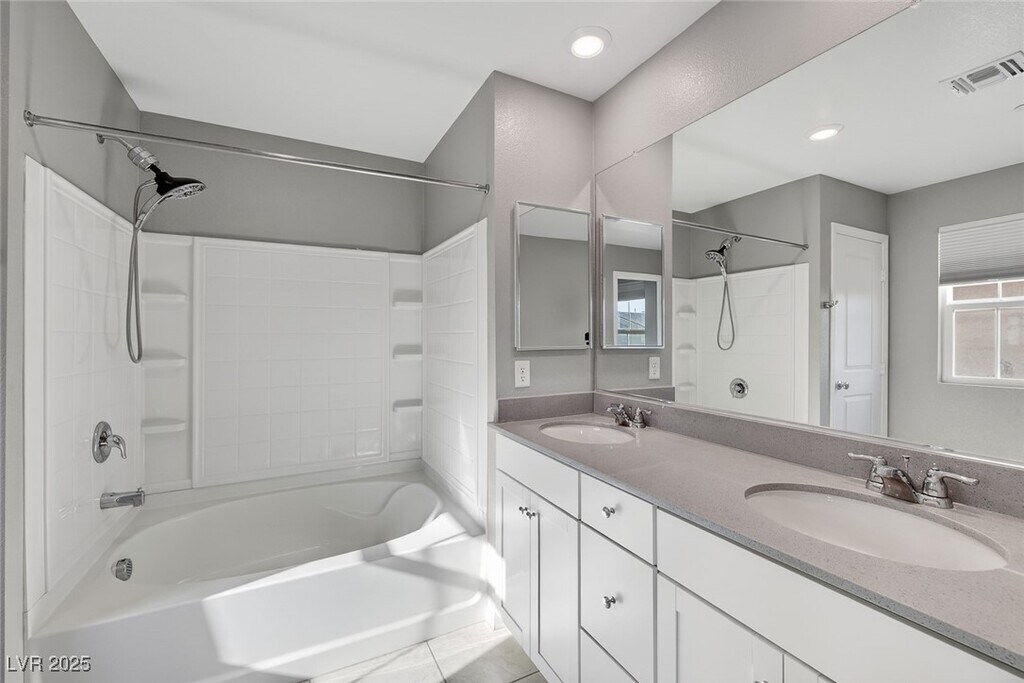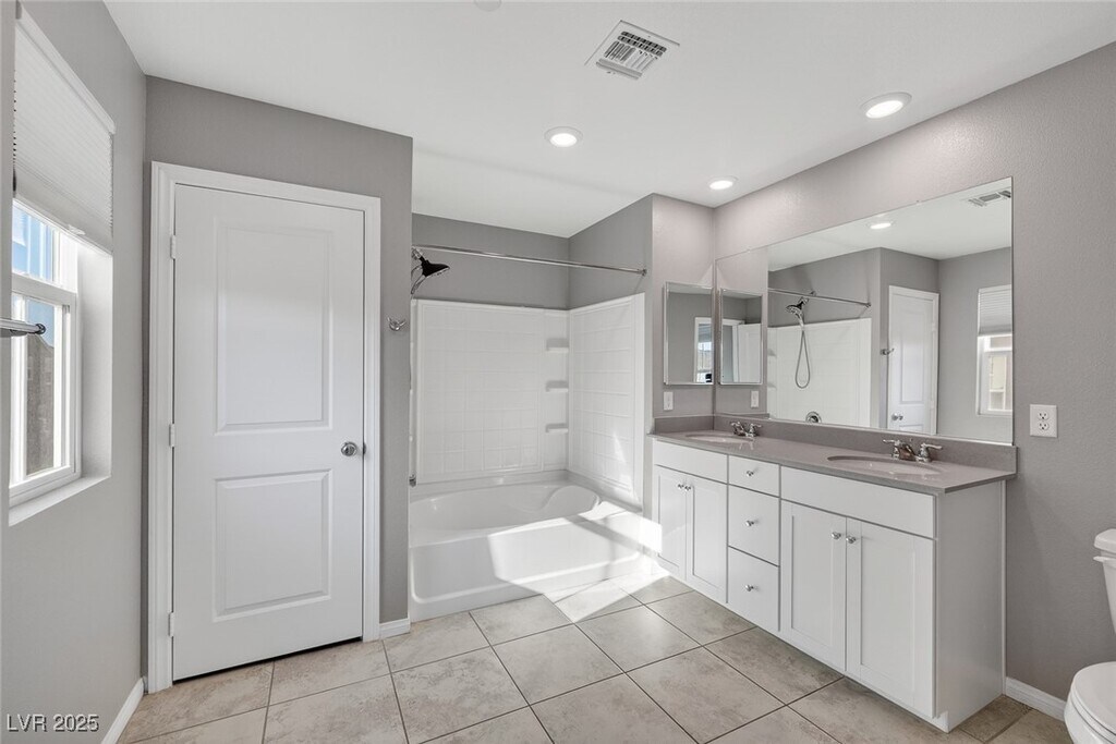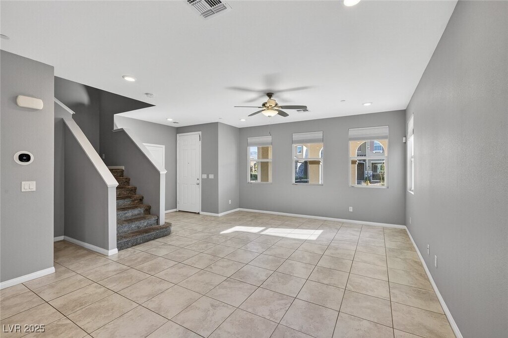 Almost New highly upgraded Inspirada Town Home. All tile flooring downstairs and all baths. Huge front covered paver patio. Formal entry leads into open great room with ceiling fan. Very large living area and dining. Kitchen has island, stainless steel appliances, micro, quartz counters, & pantry. Excellent entertaining living space to create easy flow. Oversize master bedroom with ceiling fan and walk in closet. Spacious master bath with dual sinks, quartz counters storage area. Nice secondary bedrooms. Upgraded blinds through out home. 2 car attached garage. Full size laundry room. Community has pools, parks, baseball field, walking/jogging paths, tennis courts, splash pads, parks & play grounds. Nestled up in the Henderson foothills. Everything you could want and no yard work as HOA maintains the yard.
