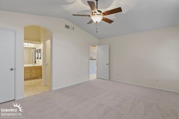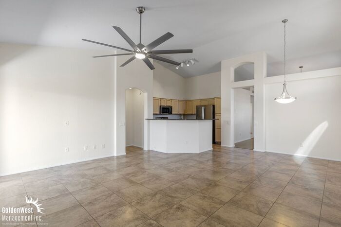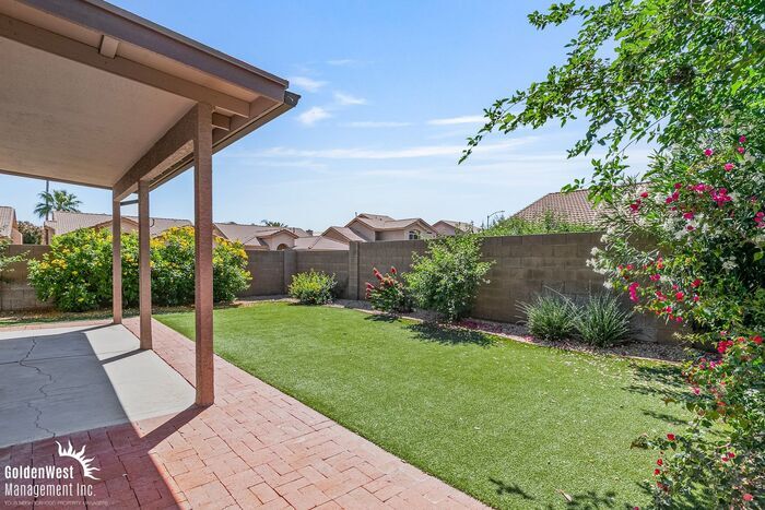 Charming 3Bdm 2Ba Home with Private Backyard! Welcome to a living area with an abundance of natural light streaming through large windows and a wood-style flooring. The layout flows seamlessly into the main living areas, enhanced by modern light fixtures and ceiling fans that add both comfort and style. The dining area features an elegant hanging light fixture and a charming arched window, offering a perfect setting for gatherings. The kitchen features wraparound countertops, ample cabinetry, and a convenient breakfast bar that opens to the living space. It comes fully equipped with appliances such us a refrigerator, a range/oven, a dishwasher, and a built-in microwave. The bedrooms are generously sized with soft carpeting, ceiling fans, and large windows that provide natural light. The primary bedroom stands out with vaulted ceilings and a spacious layout, offering a relaxing retreat. Additional bedrooms provide flexibility for guests, office space, or additional living needs. The bathrooms are well-appointed with dual sink vanities, ample counter space, and a combination of a walk-in shower and soaking tub in the primary suite. Additional amenities include a dedicated laundry area with overhead storage and washer and dryer hookups, tile flooring throughout main living spaces, and driveway parking along with an attached garage. The home also features a private backyard with a covered patio. Located in a desirable North Phoenix neighborhood, this home offers convenient access to major freeways, shopping centers, dining, and nearby parks, providing both comfort and accessibility in a well-established community. Tenant pays all Utilities. Tenant responsible for regular Landscaping service. Pets with approval via process. Total Listed Monthly Price includes Base Rent, plus Pest Share Program ($18). Prior to viewing, please review tenant leasing charge disclosure at our website This property allows self guided viewing without an appointment. Contact for details.