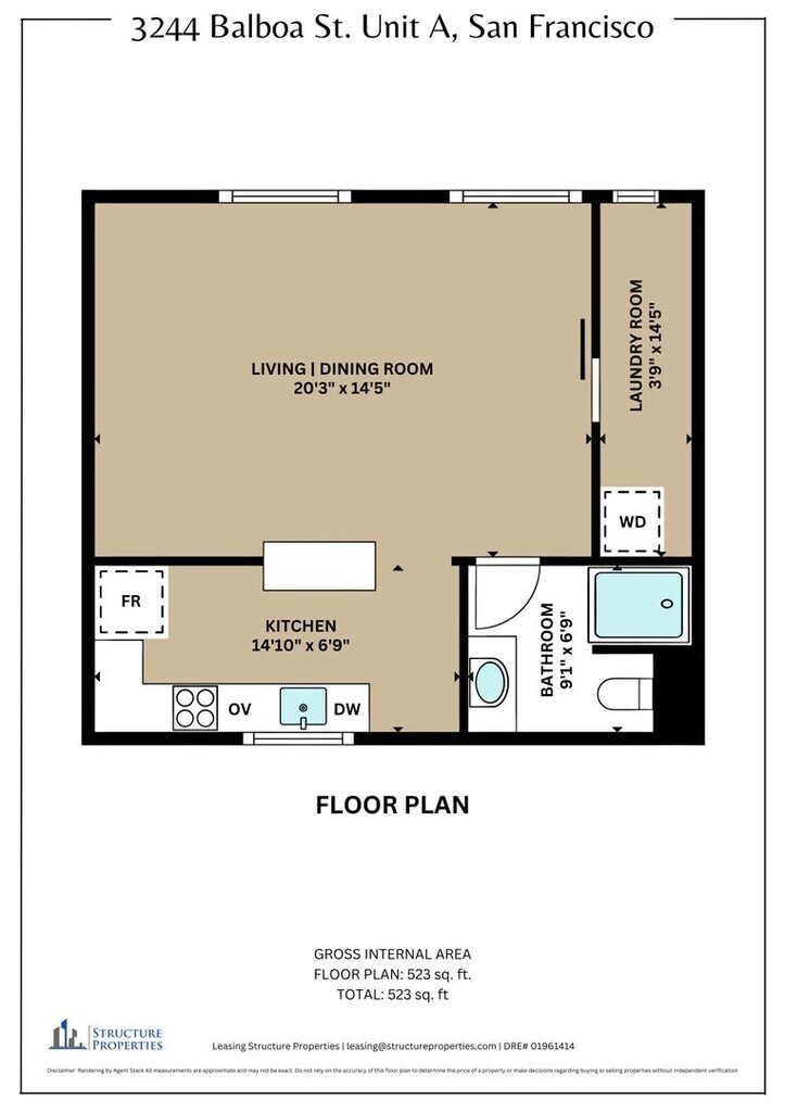 View the virtual tour here: This charming studio apartment in the Outer Richmond feels warm and inviting. The main living space is spacious with large windows that allow plenty of natural light to come in. The kitchen has been beautifully renovated with new stainless-steel appliances (including a dishwasher), upgraded countertops, and ample cabinet storage. Enjoy access to a shared backyard with one other unit and the luxury of in-unit laundry. Come see this unique studio today—it truly feels like home! LOCATION: 3244 Balboa Street is located right on Balboa Street steps away from coffee shops and cafes! 2 blocks from Golden Gate Park, nature is easily accessible from this property as well as Fulton Street for all the public transit options your heart desires! -blocks from the beach! -3 blocks from the Legion of Honor -2 blocks from Geary Boulevard with awesome shops, restaurants and bars! -3 blocks from Clement Street and 4 blocks from California Street similar situation to above! DETAILS: -Studio -1 Bath -Deposit: Equivalent to one month's rent -12 Month Lease -No Utilities Included -Laundry In-Unit -Cats and Dogs Considered REQUIREMENTS: -Gross monthly income of at least 3x monthly rent -680+ credit score -Positive references Rebekah Cook- Leasing Agent CA DRE# 02237175 Structure Properties, Inc. 3727 Buchanan Street, Floor 4, San Francisco, CA 94123 CA DRE #01961414 This unit is a rental unit subject to the San Francisco Rent Ordinance, which limits evictions without just cause, and which states that any waiver by a tenant of their rights under the Rent Ordinance is void as contrary to public policy. None Included