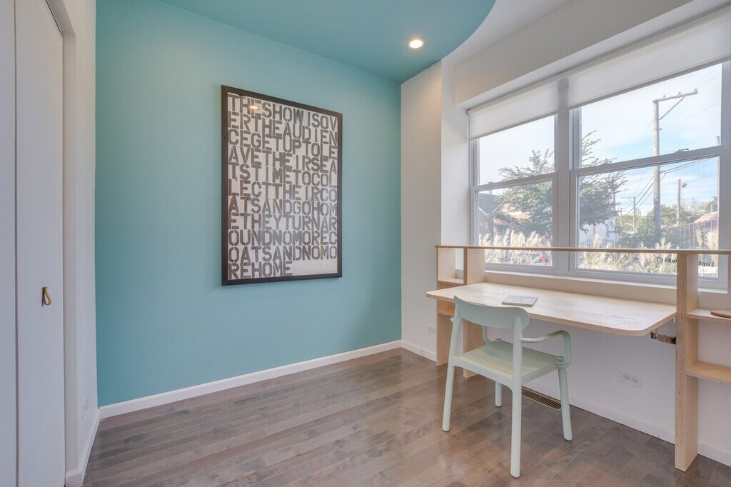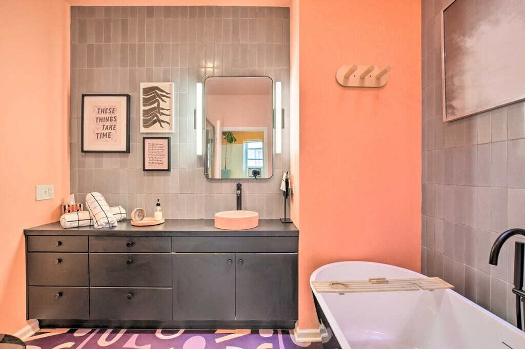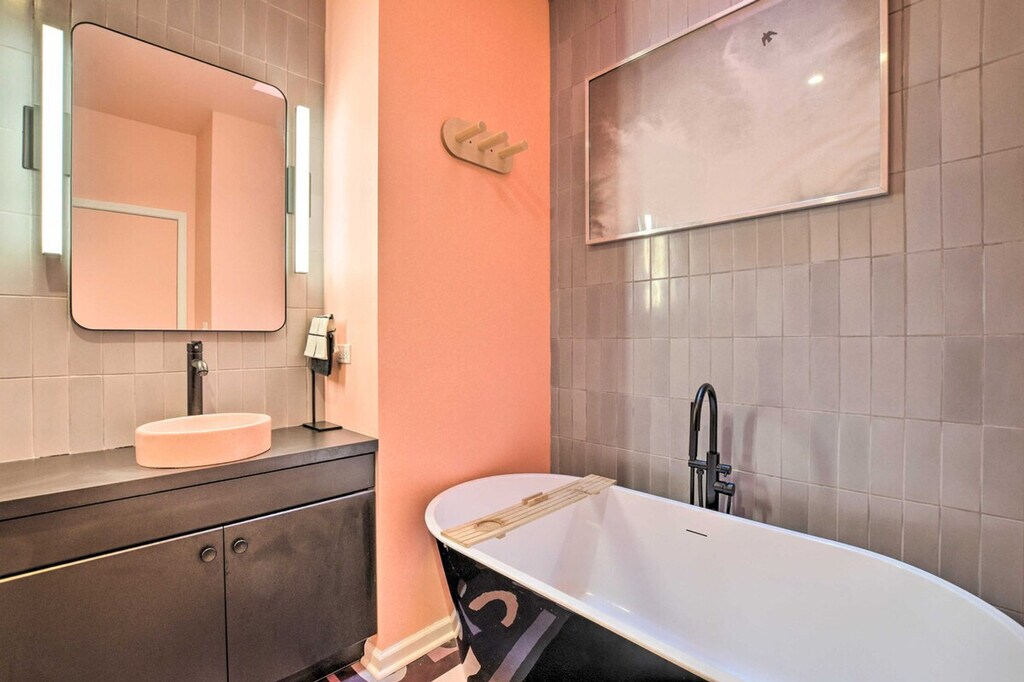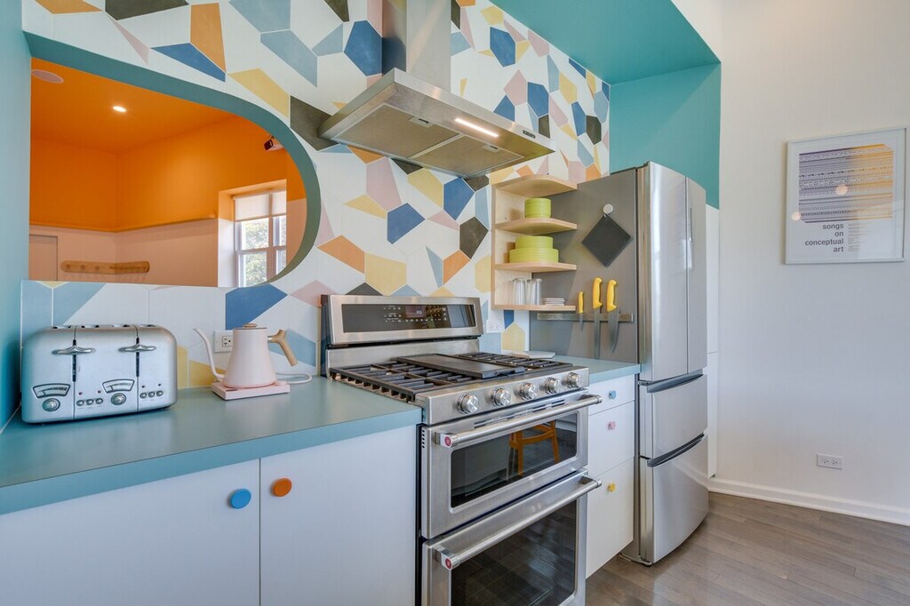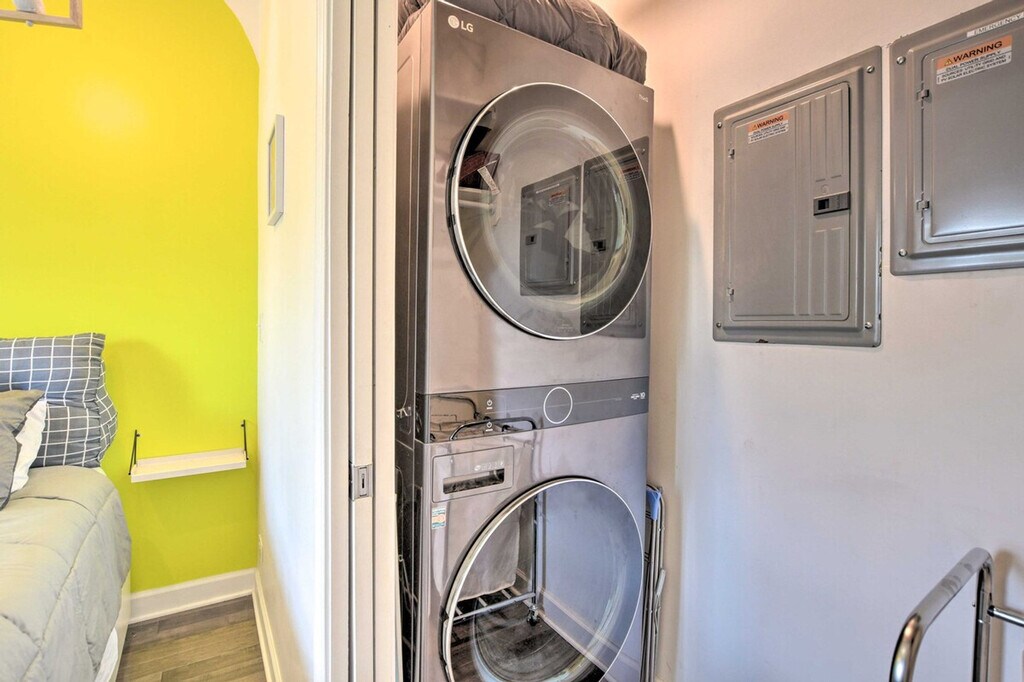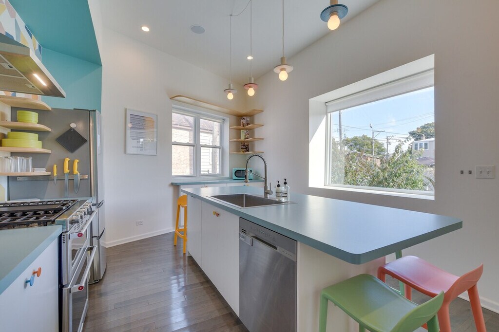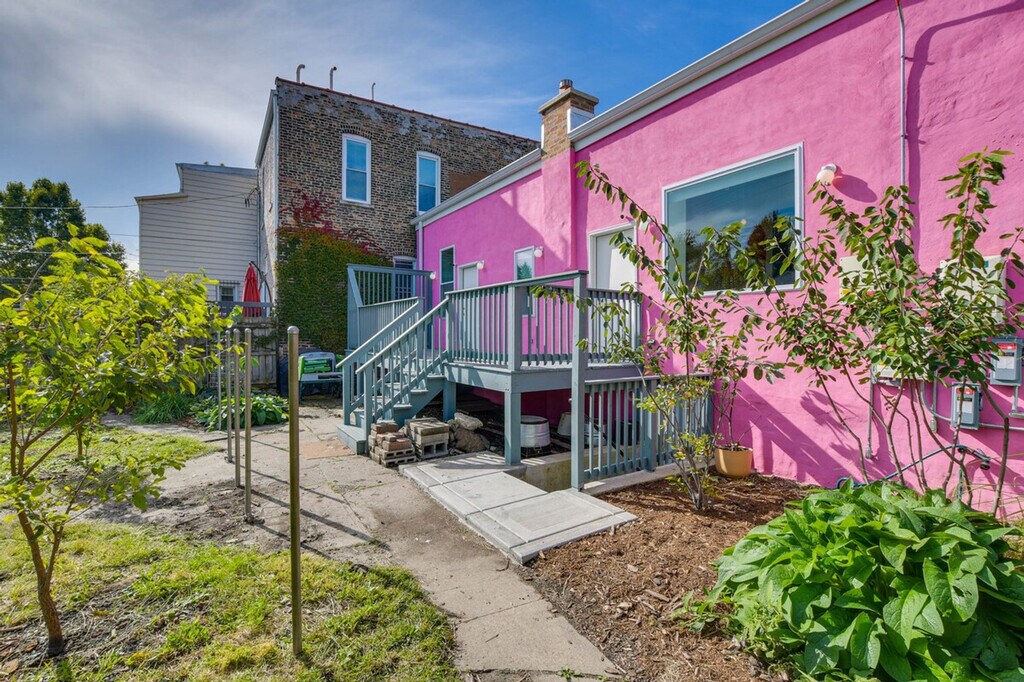 Experience the vibrant life of Chicago from this modern 1-bedroom, 1-bathroom duplex townhome, located just a few miles from downtown. Perfect for both business and leisure, this home offers a colorful chef's kitchen and a shared deck for relaxation after a day of exploring the city's diverse neighborhoods, restaurants, museums, and arts. This thoughtfully designed townhome features built-in furniture, a steam shower, a fireplace, and on-site laundry. The chef's kitchen is equipped with a gas range, stainless steel appliances, bar seating, a stand mixer, and all necessary dishware and flatware. Enjoy free WiFi, keyless entry, and complimentary linens, towels, and toiletries. Free street parking is available on a first-come, first-served basis. Situated close to downtown, this townhome provides easy access to Chicago's many neighborhoods, offering a plethora of dining options, museums, and arts. Public transportation and major attractions are within reach, making it an ideal base for exploring the city. The property requires stairs for access, with three small steps for entry. Guests must be at least 25 years old to book. The property features three exterior security cameras for safety, located above the front door and on the sides of the house, recording video and sound when activated by motion. No smoking, pets, events, parties, or large gatherings are allowed. Includes an office space, making it remote work-friendly. Registration Number: R2 [SI]