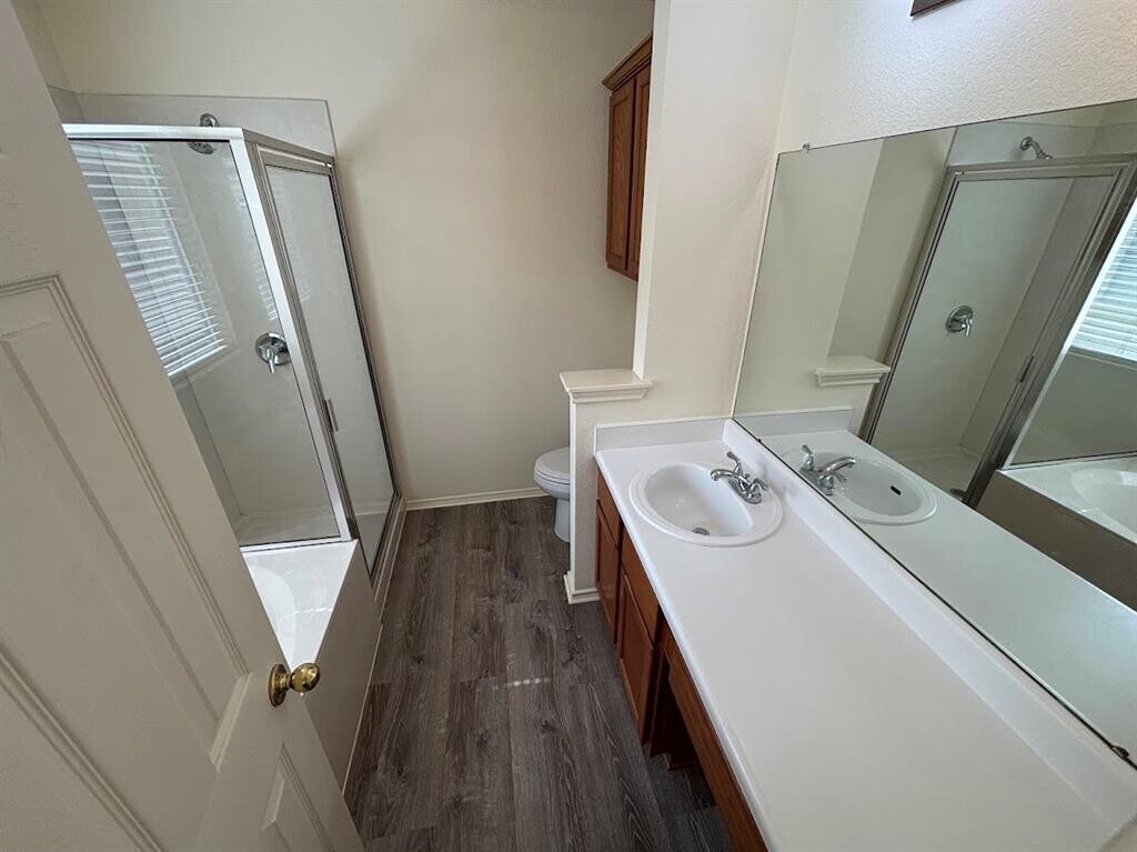 Welcome to this wonderful 4-bedroom, 2.5-bathroom home nestled in a small, cozy neighborhood just minutes from Southpark Meadows! Featuring vinyl plank flooring throughout the downstairs and brand-new carpet upstairs, this home offers both comfort and style. The open kitchen flows seamlessly into the family room, creating a perfect space for entertaining and everyday living. Refrigerator included. Enjoy two spacious living areas—one downstairs and one upstairs—ideal for relaxing or hosting guests. The primary suite is conveniently located on the main floor and features a garden tub, separate shower, and ample space. Upstairs, you’ll find three generously sized bedrooms and a full bath. Additional highlights include ceiling fans throughout, a 2-car garage with opener, and a fully fenced backyard. With quick access to shopping, dining, entertainment, and major highways, this home offers the best of South Austin living. Available now—don’t miss it!