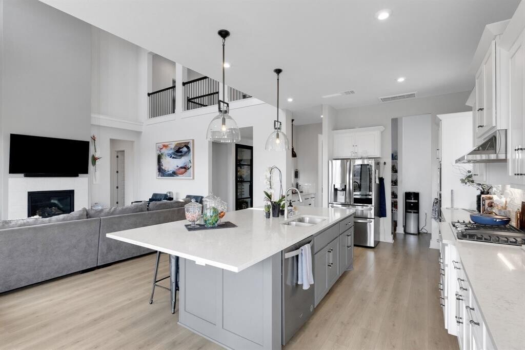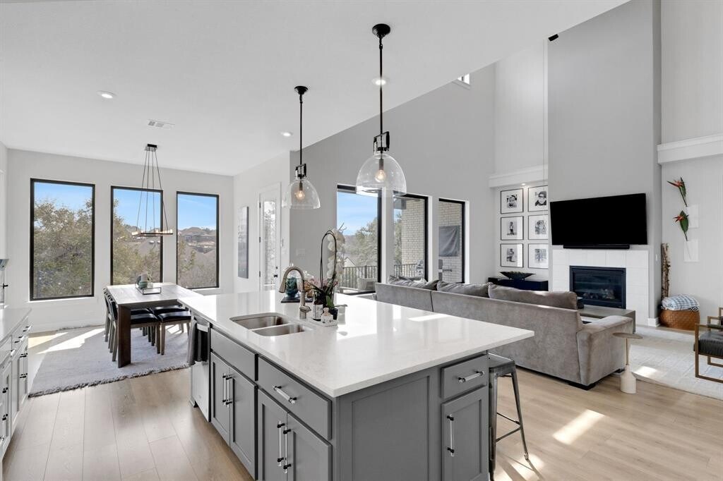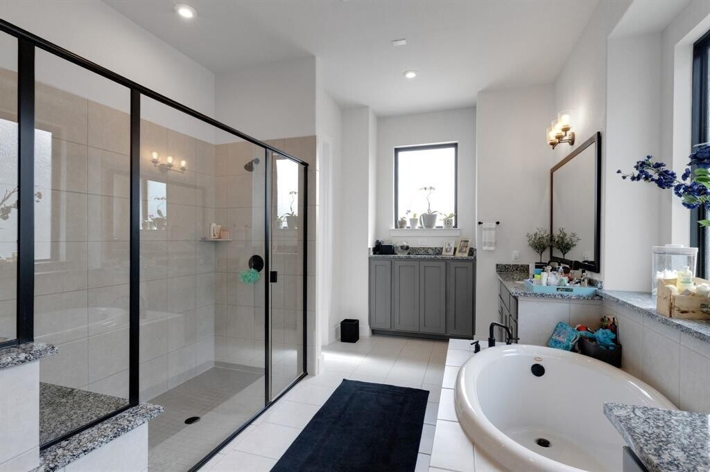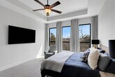 Exquisite executive residence located in the prestigious Wolf Ranch West community. This sophisticated modern home features 4 bedrooms and 4.5 bathrooms, elegantly situated on a spacious 0.22-acre lot within a tranquil cul-de-sac, surrounded by lush greenery. Luxurious finishes adorn every corner, ensuring the epitome of refined living. The main level offers a master bedroom suite and a guest ensuite, providing both comfort and privacy. Designed for effortless entertaining and everyday living, the home boasts a wealth of amenities, including a study, two dining areas complemented by a Butler's pantry, two living areas, and a dedicated media room. The heart of the home lies in the expansive open-concept kitchen, featuring an extended island and seamlessly flowing into the breakfast area and living room, where oversized windows frame picturesque views of the surrounding greenbelt. Step outside to discover a serene outdoor space, ideal for hosting gatherings and creating cherished memories. With a three-car split garage providing ample storage, this residence perfectly balances functionality with luxury. Experience the ultimate blend of family living and entertainment in this remarkable home, designed to fulfill every desire and exceed all expectations. Pest Control included. MLS ID 2980921