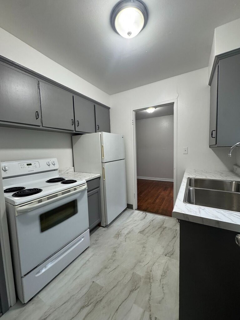 2 bedroom 1 newly remolded bathroom apartment. Close to the U of O, shopping and bus lines. Hardwood floors in living and dining areas, carpet/linoleum in bedrooms/kitchen and bath. 1 parking space per unit and permit street parking can be purchased through the city. On-site Laundry room. Rent includes W/S/G. Lots of storage space. No Pets allowed and 1 year lease required. Open Enrollment 10/24/25 @ 3pm Apply here: Sterling Management