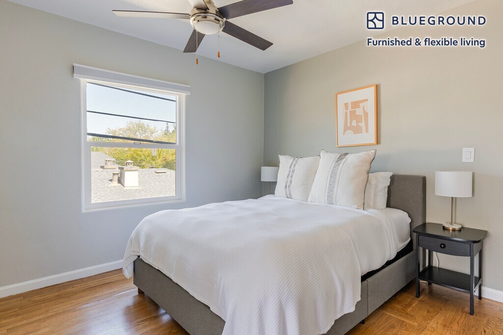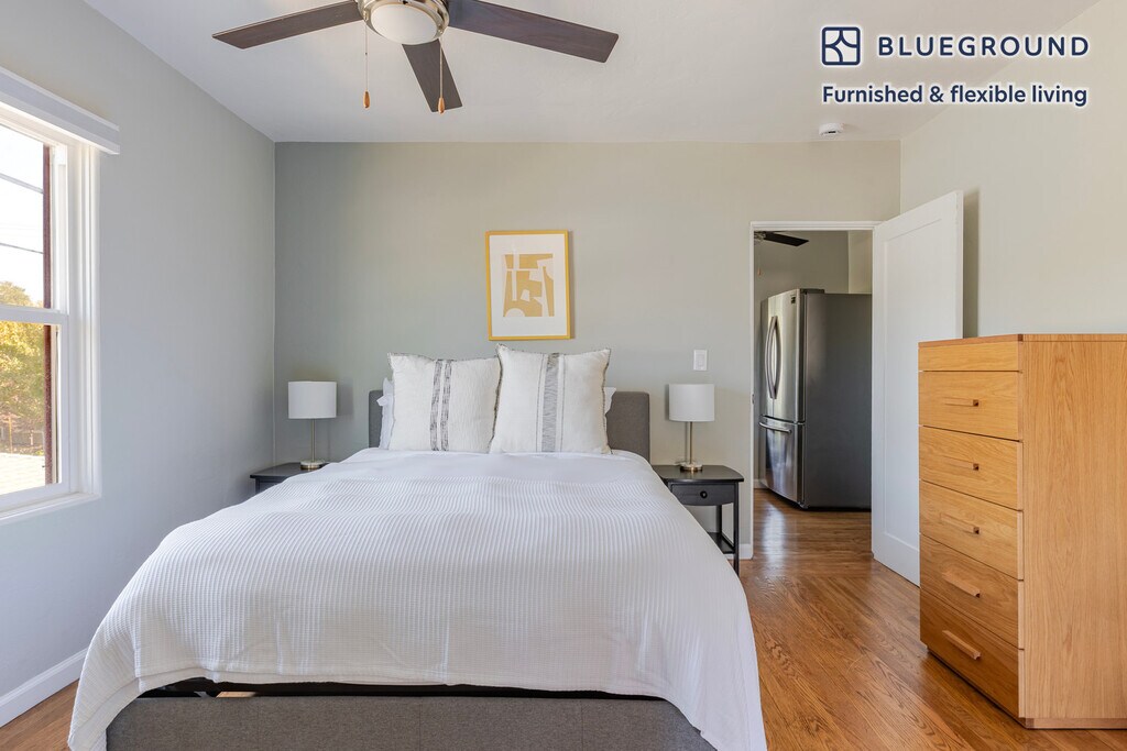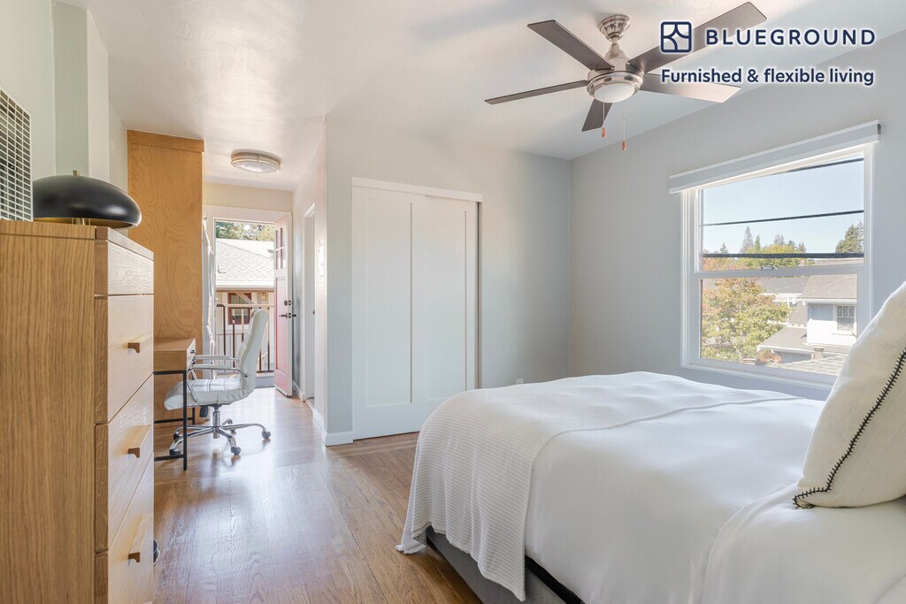 Discover the best of Palo Alto, with this one bedroom apartment in Downtown North. It’ll be easy to simply show up and start living in this furnished apartment with its fully equipped kitchen, living room, and our dedicated, on-the-ground support. (ID #SFO2012) The advertised rate of $4,410/month is the lowest available price, based on a 12 month(s) stay with a move-in date of April 2, 2026. Rates vary depending on the duration of stay, season, and other parameters. For exact pricing and additional pricing components, please visit our website and enter your desired move-in and move-out dates. The rate is applicable when billed upfront; it can be higher if billed in multiple payments. Brokers are welcome to reach out. Were you looking for an unfurnished lease? Try Blueground instead and upgrade from unfurnished to furnished living: - Furnished at rates comparable to unfurnished - No setup or furniture costs - save thousands - Move-in ready - save time, just bring your suitcase Designed with you in mind Thoughtfully designed with bespoke finishes, modern furnishings, and a fully equipped kitchen, you’ll enjoy that “I’m home” feeling with this Blueground apartment. Whether you’re lounging in your cozy living room streaming the latest and greatest entertainment on the smart TV or premium wireless speaker, or getting some well-earned rest on the superior quality mattress with fully stocked linens, you’ll fall in love with everything this Downtown North apartment has to offer. Sleeping arrangements Queen Bed, 63in/160cm Amenities Building amenities unique to this one bedroom apartment include an on-site: - Dryer in building - Washing machine in building - Parking - Pets allowed Arrival and ongoing support The entire apartment is yours to enjoy! Throughout your stay, you’ll have access to our Client Experience team through the Blueground App. You can schedule additional cleanings, submit maintenance requests, and view our neighborhood recommendations with just a few taps. We’ll share all details upon confirmation of your stay. Other things to note This Blueground apartment has flexible lease options, allowing you to book it for one month, a year, or more. Pets are welcome, though weight limits and breed restrictions apply and may incur fees. Parking is offered based on availability and is subject to a fee. Please keep in mind that this is a walk up building. We take great pride in ensuring every photo displayed is shot in our own units with our actual furnishings. That said, we regularly refresh our decor and furniture arrangement, which may differ from what’s pictured. [SI]
