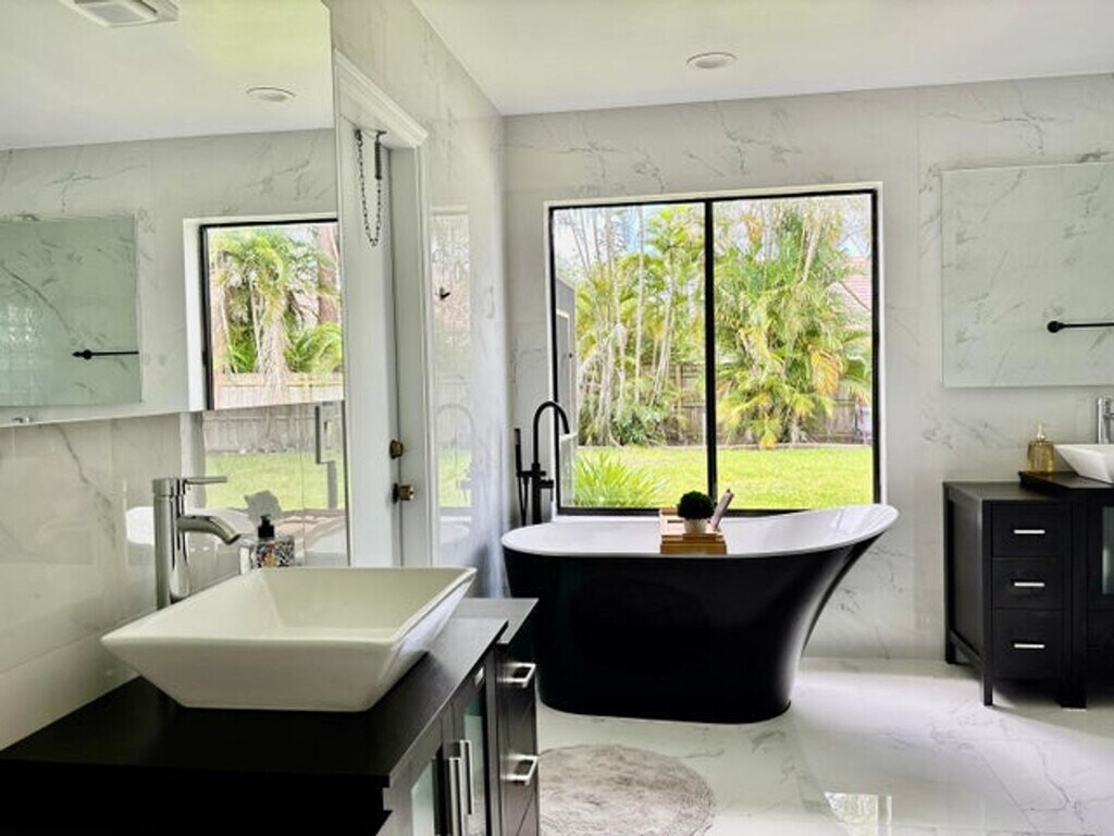 Courtesy of United Realty Group, Inc. Modern Turnkey Oasis with Private Basketball Court & Saltwater Pool Experience the best of Wellington in this stunning, fully furnished 5-bedroom, 2.5-bathroom pool home. Located on a quiet cul-de-sac with no HOA, this 1/3-acre property offers ultimate privacy and modern luxury. Move-In Ready: Totally remodeled with contemporary wood-look laminate flooring and an open-concept layout. Features sleek white cabinetry and premium stainless steel appliances. Furnished with 1 King, multiple Queens, and a bunk bed to accommodate any group size. Interior laundry room, spacious walk-in closets, and a 2-car garage. Step outside to your private paradise! Enjoy a massive screened patio, a pristine saltwater pool, and your very own basketball Court! The 1/3-acre lot provides plenty of room for pets and play. Centrally located in a highly desirable neighborhood. You are minutes away from world-class Equestrian venues, fine dining, shopping, Publix, and entertainment. Dually-friendly and pets are welcome!