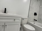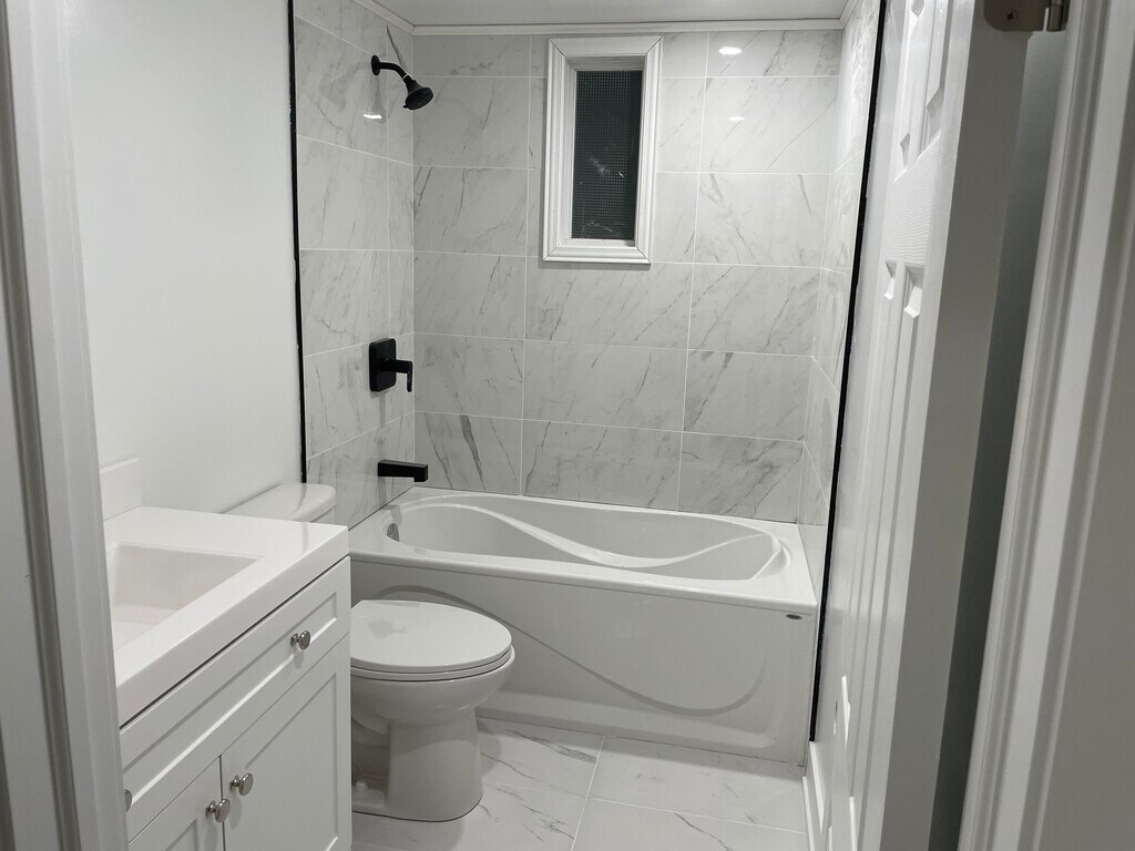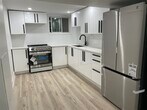 Fully renovated lower-level unit, one bedroom, one newly remodeled bathroom, situated on a peaceful street. Apt. has a spacious, private entrance with a combined living/dining area with hardwood flooring, a window offering a view to the west, and a three-piece bathroom. The modern-style kitchen has a two-door stainless steel refrigerator, new cabinets, and a 4-burner range with a double window above the sink. The bedroom features a window, plank flooring, flat ceilings, closets, and LED lighting.