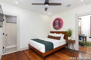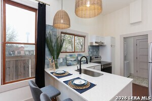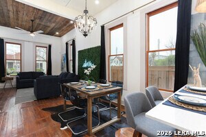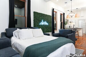 Beautifully fully furnished(down to the dishes) DTSA 2 bed 2 bath bungalow with minimal maintenance. Located walking distance to Alamodome, Hemisphere, Convention Center and Downtown. Completely updated with new furniture including appliances, TVs and a relaxing hot tub. Yard is fully xeriscaped with astroturf and a pergola covered patio. Vivent smart home that can control AC/Locks/Cameras. Shorter Terms available 3-6 months-Call or text for pricing.