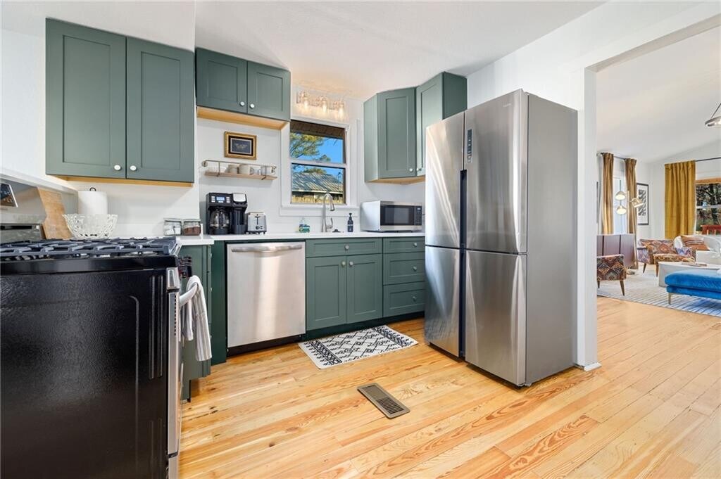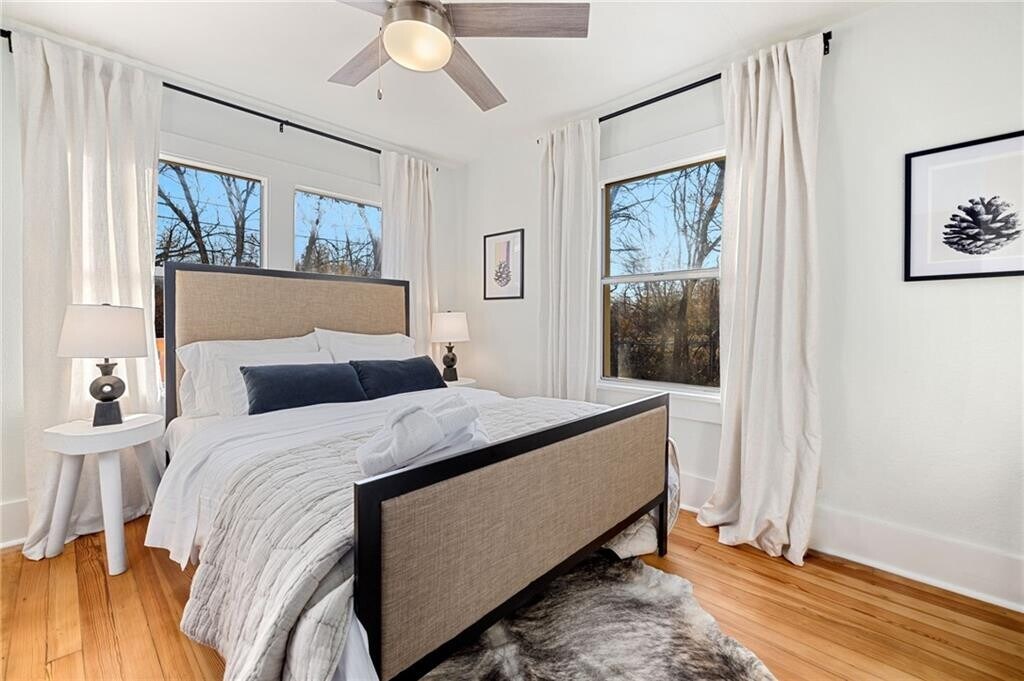 Double Lot! This updated home is nestled on .27 acres in the heart of Fayetteville! Just blocks away from the vibrant Fayetteville Square and minutes from the Razorback Greenway trails. Right around the corner are Dickson Street's shops and eateries, and the University of Arkansas campus. This meticulously updated home blends timeless character with modern upgrades for effortless downtown living. Step inside to vaulted ceilings and beautifully refinished heart of pine wood floors that flow throughout the open layout. The fully remodeled bathroom features high-end finishes, while the kitchen shines with stainless steel appliances, custom cabinets, and luxurious quartz countertops. Stay comfortable year-round with new central heat and air, enhanced by energy-efficient new windows, siding, and gutters. Outside, unwind on the spacious new front and back porches, perfect for enjoying your large, private yard –a rare find for downtown. Book a tour to view this property in one of Fayetteville's most desirable locations! MLS# 1331028