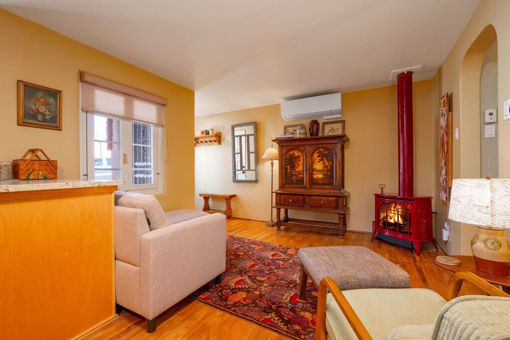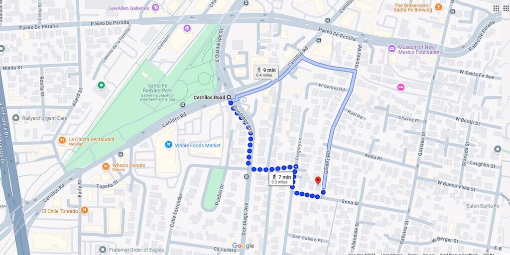 Discover the perfect blend of comfort, charm, and convenience at this cozy 1-bedroom adobe casita in a quiet Santa Fe neighborhood. Just a 7-minute walk to the vibrant Railyard District and a quick drive or relaxed 20-minute stroll to the historic Plaza, this inviting retreat places you in the heart of Santa Fe’s best dining, shopping, and cultural experiences. Inside, warm wood floors and traditional Southwest style create a welcoming atmosphere. The comfortable living area features a loveseat and chair, a flat-screen TV, and a gas fireplace, perfect for unwinding after a day of exploring. The fully equipped kitchen boasts a gas stove, ideal for preparing delicious meals with fresh ingredients from the nearby Farmer’s Market. The private bedroom offers a plush queen bed, ensuring a restful night’s sleep, while the modern bathroom includes a walk-in shower for added convenience. Stay connected with Wi-Fi, or unplug and soak in the peaceful ambiance of this quiet neighborhood. Step outside to the well-maintained backyard, where you’ll find a charcoal BBQ grill and comfortable seating, a perfect spot to relax under the Santa Fe sky. Baby equipment is available on a first-come, first-served basis for an additional fee. Off-street parking is limited to one vehicle for this 1-bedroom house. If you use the extra linens for any air mattresses or sofa beds and have not paid the ‘additional guest’ fee, there will be a charge of $25 per linen set. The local neighborhood and the city of Santa Fe are full of amazing places to visit. The Railyard District is a large arts district with galleries, performance spaces, a cinema, restaurants, and antique shops. The Farmers Market is perfect to visit on Saturday mornings. The Santa Fe Plaza is also nearby, featuring many historical and arty locations like the Georgia O’Keeffe Museum and the Cathedral Basilica of St. Francis de Assisi. Canyon Road is a short walk or drive as well, offering many galleries and restaurants. Museum Hill is home to the Botanical Gardens and several museums. The Santa Fe Ski Basin is about thirty minutes away. There are trails for every kind of hiker here, some a mere ten minutes up the hill from your casita. Meow Wolf offers an immersive and interactive experience with art installations and extended reality content. Quiet hours are between 7:00 AM and 10:00 PM, with outdoor quiet time starting at 9 PM. Smoking indoors is not allowed, and you will be charged a $500 cleaning fee if you smoke in the house. Pets are not allowed, and if evidence of a pet is found, you will be charged a $300 cleaning fee. Check-in and check-out times are specified in the house manual or booking confirmation. Late check-out without approval may incur a fee of $40 per hour if it interferes with the next guest's check-in time. Stay connected with Wi-Fi, or unplug and soak in the peaceful ambiance of this quiet neighborhood. Registration Number: STR237064