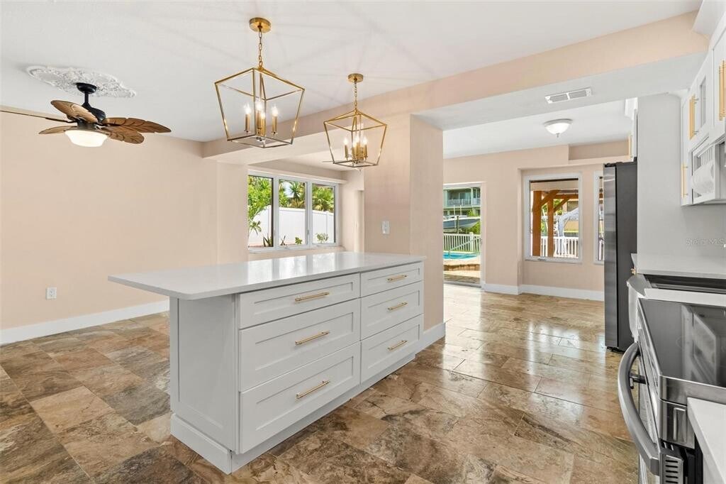 Waterfront Living at Its Best – Heated Pool,In-Law Suite & Direct Gulf Access. Tucked away on a quiet canal just minutes from the Anclote River,this beautifully updated 4-bedroom,2.5-bath pool home offers the perfect blend of flexibility,functionality,and Florida waterfront charm. With direct boat access to the Gulf of Mexico in just 15 minutes,and only 7 minutes to the iconic Tarpon Springs Sponge Docks,the location truly speaks for itself. Whether you're accommodating extended family or simply looking for extra space and privacy,the home’s unique upstairs suite offers a full kitchen,spacious bedroom,living area,and full bath—an ideal setup for guests,in-laws,adult children,or even a luxurious upstairs primary retreat. Downstairs features three additional bedrooms and 1.5 baths,along with a stylish new kitchen (2025) outfitted with granite countertops and an open flow into the dining and family rooms. Travertine tile flooring adds warmth and elegance throughout the main living areas,and triple sliding glass doors open to a backyard built for enjoyment—with a heated,L-shaped pool,paver patio,and gorgeous water views. Other standout features include a durable metal roof,a fully fenced backyard,sprinkler system,boat lift and davits—ready to accommodate all your water toys—and just steps away from Rotary Park,where kids can run and play. Whether you prefer your primary bedroom upstairs or downstairs,this flexible layout has you covered. Close to shopping,dining,and the renowned Innisbrook Golf Resort,this home checks all the boxes for full-time living,vacation use,or investment income. Opportunities like this don’t last long—schedule your private showing today! MLS# TB8463827