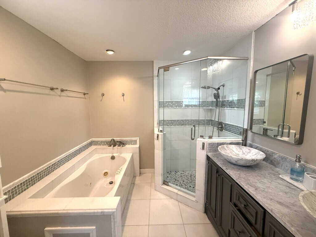 Beautifully furnished home. Enjoy million-dollar lake views from this beautifully maintained 3-bedroom, 2 1/2-bath pool home with an additional den, located in Delray Beach's #1 neighborhood. Perfectly situated on the Sherwood Park Golf Course with no membership required.The split floor plan features a formal living and dining room that opens to a screened pool and patio area, perfect for relaxing or entertaining. The updated kitchen boasts wood cabinets, granite countertops, and stainless-steel appliances. The spacious master suite includes a California closet, a sitting area, and a luxurious bath with a Jacuzzi tub, double-sink vanity, custom lighting, and a glass-enclosed shower