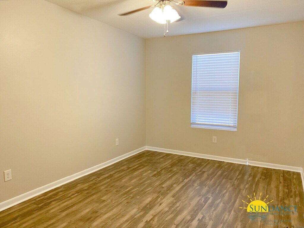 This well-maintained 2-bedroom, 1-bathroom bottom unit is perfectly located in Gulf Breeze—close to Highway 98, shopping, dining, and top-rated schools. The interior features fresh paint throughout, durable LVP and tile flooring, and a spacious open-concept living and dining area. The galley-style kitchen provides plenty of cabinet and counter space. Both bedrooms are generously sized, and the full bathroom is clean and functional. A separate laundry room offers convenient washer and dryer hookups. Enjoy hassle-free living with garbage and lawn care included in the rent. One parking space is available on a first-come, first-served basis. Don’t miss the opportunity to make this lovely property your new home! One Small pet considered with a $300 per pet non-refundable pet fee (Subject to Owner Approval) No smoking is permitted. In addition to the rental amount, all Sundance Rental Management residents are enrolled in the Resident Benefits Package (RBP) for $25.00/month which includes liability insurance, credit building to help boost the resident’s credit score with timely rent payments, and much more! The benefits can be found on our website under Tenant FAQ.