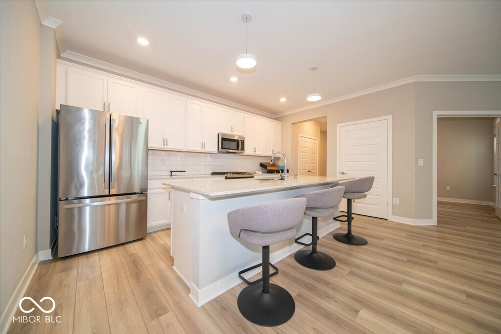 Nestled at 3252 Jasper LN,BROWNSBURG,IN,this single-family residence in Hendricks County presents an attractive property in great condition,ready to welcome you home. Built in 2023,this inviting space offers modern living across its well-designed layout. The kitchen serves as a culinary centerpiece,featuring shaker cabinets crowned with elegant molding,stone countertops providing ample workspace,and a large kitchen island perfect for meal preparation or casual dining,all complemented by a stylish backsplash that ties the space together; the kitchen bar provides additional seating and serving options. The living room is designed for relaxation and entertainment,featuring a fireplace as a focal point and crown molding adding a touch of architectural interest. The primary bedroom offers a personal retreat,complete with an ensuite bathroom featuring a double vanity and a tiled walk-in shower,creating a spa-like experience. This home also includes a convenient laundry room,a welcoming porch,and a private patio,extending your living space outdoors. The open floor plan enhances the sense of space and connectivity,creating an inviting atmosphere throughout the 1632 square feet of living area. The property sits on a 6098 square feet lot,offering a comfortable outdoor area to enjoy. With its modern construction and thoughtful design,this property offers an unparalleled living experience. New fans,curtains & blinds are included with the house. The services covered by HOA: Building Exteriors: Roofs,exterior walls (siding,doors,windows),gutters,and exterior painting. Landscaping: Mowing,trimming,fertilizing,leaf removal,and mulching Snow Removal: Driveways,entry stoops,and sidewalks Irrigation: Annual opening,closing,and backflow testing of sprinkler systems Insurance: "Structure Insurance" (casualty insurance) on the Dwelling Units. Based on information submitted to the MLS GRID as of [see last changed date above]. All data is obtained from various sources and may not have been verified by broker or MLS GRID. Supplied Open House Information is subject to change without notice. All information should be independently reviewed and verified for accuracy. Properties may or may not be listed by the office/agent presenting the information. Some IDX listings have been excluded from this website. Prices displayed on all Sold listings are the Last Known Listing Price and may not be the actual selling price.