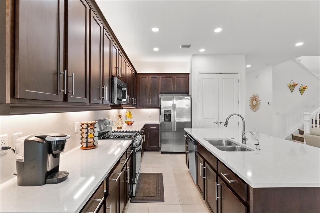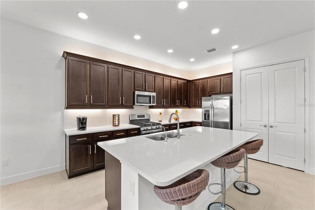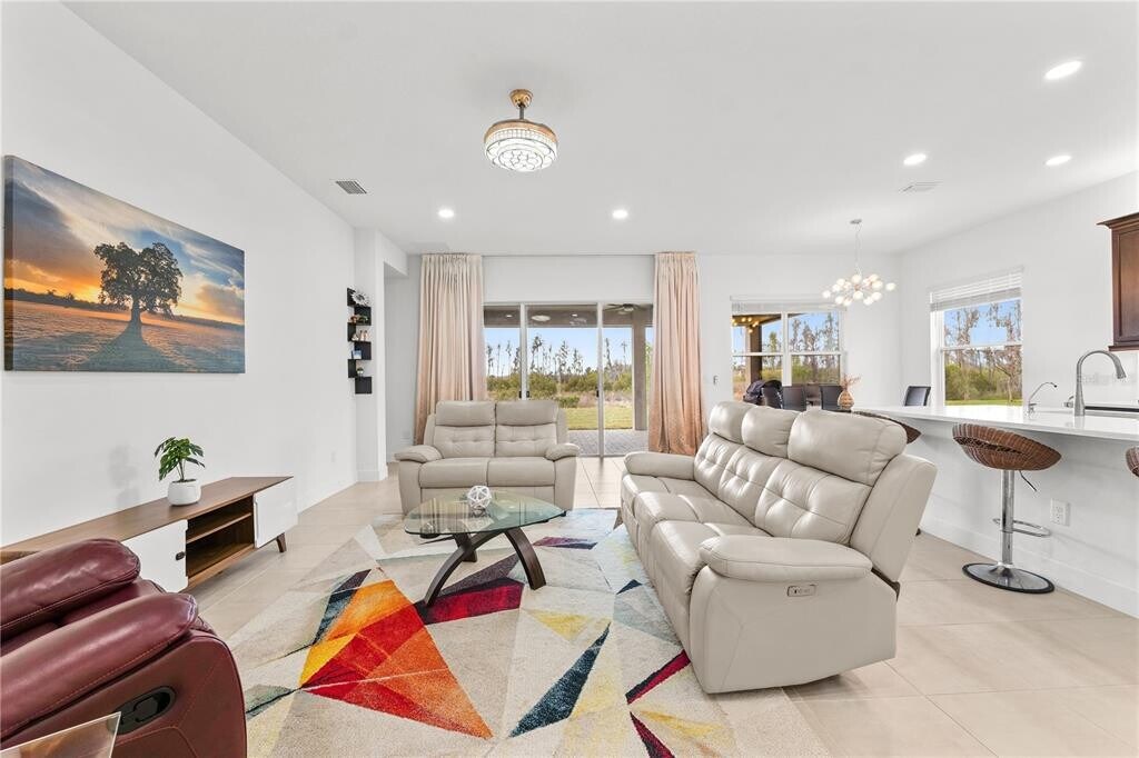 One or more photo(s) has been virtually staged. Experience elevated living in the gated community of Winding Ridge in Wesley Chapel. This beautifully designed home offers modern finishes,an open floor plan,and a low-maintenance lifestyle. The spacious layout features a chef-inspired kitchen with quartz countertops,designer backsplash,and included appliances. The living area opens to an extended covered patio with an upgraded summer kitchen and motorized retractable screens—ideal for relaxing or entertaining. Wood flooring,recessed lighting,and window treatments enhance the home throughout. All bedrooms include walk-in closets,with multiple en-suite layouts. Energy-efficient features include a pre-installed EV charger,tankless water heater,and whole-house water softener. Solid concrete block construction with a hip roof provides durability and peace of mind. Situated on a preserve lot with no rear neighbors,the home offers added privacy along with a first-floor guest suite. Community amenities include a pool,splash pad,tennis,pickleball,basketball courts,and clubhouse. Conveniently located near Pinecrest Academy,shopping,dining,and major highways including I-75 and I-275. Available for occupancy. Flexible lease terms available,including a potential lease purchase option. All terms subject to owner approval. Applicants subject to standard background,credit,and income verification. HOA approval required. MLS# TB8490119