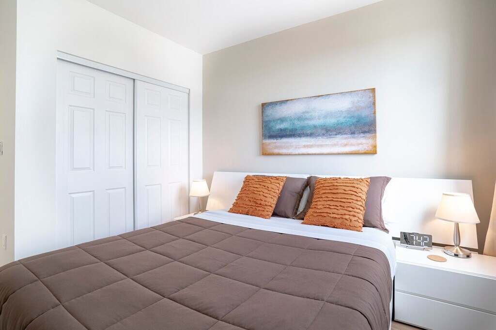 The advertised rate of $4,886/month is the lowest available price, based on a 30 day(s) stay with a move-in date of May 8, 2026. Rates vary depending on the duration of stay, season, and other parameters. For exact pricing and additional pricing components, please visit our website and enter your desired move-in and move-out dates. The rate is applicable when billed upfront; it can be higher if billed in multiple payments. Experience Miami from this modern 2-bedroom apartment near Coral Gables. Perfect for 4 guests, this stylish retreat offers an ideal urban getaway where you can feel at home. This well-lit apartment is designed for comfort and convenience. The living area features a comfortable blue sectional sofa and a 65” smart TV. The fully equipped kitchen has modern stainless steel appliances, perfect for preparing meals. An in-unit washer and dryer are included for your convenience. One dedicated parking space is included for a compact car. Larger vehicles will need to find alternative street or garage parking. Pets are welcome with an additional fee. Walk to local shops and vibrant downtown dining. Smoking is not allowed inside, and a $450 fine will be imposed for violations. If linens are damaged, an extra cleaning fee of $200 will be charged for stains inside the apartment or in the building grounds. The included parking space is suitable for a compact car only. For early check-in or late check-out, please inquire first; fees are $50 for 2 hours, 50% of the day's rate for 2-3 hours, and 100% of the day's rate for more than 4 hours. If white linens and towels are used for cleaning makeup or shoes, a charge for replacement will be applied: $5 per hand towel, $10 per bath towel, $25 per twin set, $40 per queen set, and $55 per king set. Includes a dedicated workspace with a desk, perfect for remote work, and high-speed Wi-Fi throughout the apartment. [SI]