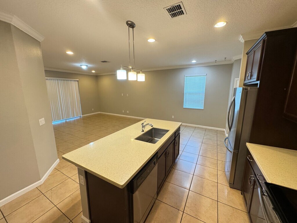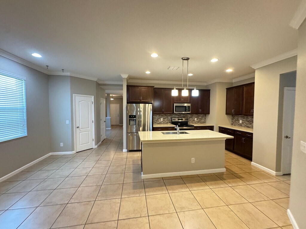 Water view 4BR home that shows like a model! Immaculate condition and move-in ready. You'll love having the heart of the home in the back -huge open kitchen and living room space there is direct access to the lanai and a wonderful water view. Gourmet style kitchen with stone counters, island, breakfast bar and plenty of room to eat in. Appliances included! You can set up a more formal dining experience in the room off the entry. All bedrooms, secondary bath & laundry room are tucked off the home's hallway. Master suite in the back boasts two walk-in closets and ensuite contemporary bath w/two sinks, soaker tub and separate shower. You'll love having a garage w/ WOW factor. Room for a third vehicle, workshop or storage space. One reason you'll want to own this home is all that you have outside oversized screened, paver lanai with beautiful water view. TV mount helps add to the entertainment that this space will bring. There are also two open paver areas in the fenced part of the yard great for sunbathing or setting up your outdoor grill. Yard surrounded by attractive metal fencing which maintains your water view. Great location a short drive to essential shopping, major roadways, The Orlando International Airport and Lake Nona Medical City. Come see all that this special home has to offer! Please visit The Realty Medics website () to schedule a showing and apply or give us a call! Frequently Asked Questions: How can I get started? Go to The Realty Medics website! Select the property you want on the Rentals page, click the blue “Schedule A Showing” button above the property address, and complete the page accordingly. Once you’re ready to apply, click the blue “Apply Now” button to apply from our website and complete the online application form. Internet Ready Property, $64 recurring monthly cost for the duration of the lease agreement Pet restrictions? 30 lbs max Yes: No Aggressive or Dangerous Dog Breeds (Including but not limited to Akita, American Bulldog, American Bull Terrier, American Staffordshire Terrier, Chow, Rottweiler, Malamute, Bull Mastiff, Presa-Canario, Staffordshire Terrier, Shiba-Inu, Karelian Bear Dog, Wolf hybrid, or Wolf-like breeds). Additional HOA limits may apply. Application requirements /rental-requirements and Move-in fees, Deposit information, and Pet Rent/Fees can be found at /tenant-faq