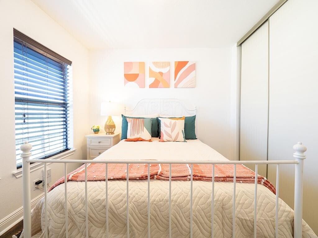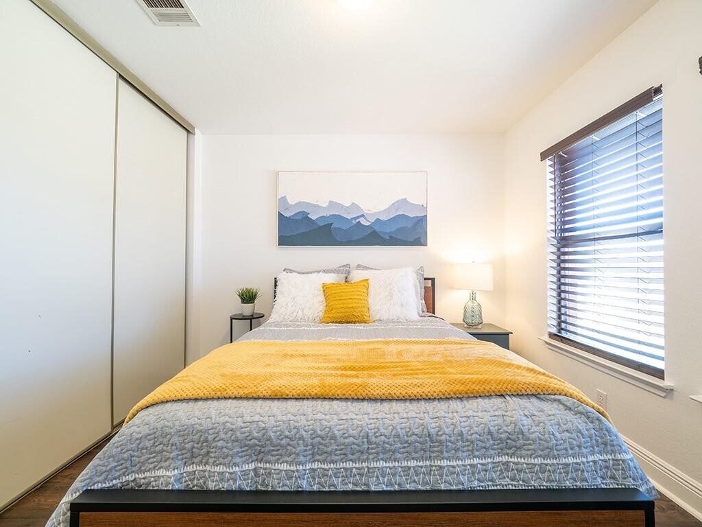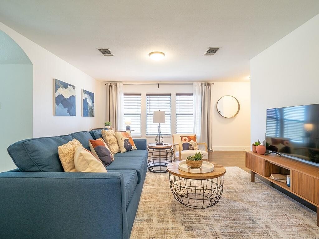 This Round Rock bungalow sits in a quiet neighborhood with easy access to Highway 45 and Loop 130, allowing commuters to easily get around the city. The layout features a large eat-in kitchen, with sliding doors that extend to the backyard. Living area features three large windows with lots of natural light, the master bedroom sits at the back of the house with its own large closet and en-suite bathroom. The washer and dryer are in unit located in a separate laundry room. There are two secondary bedrooms sharing another full bathroom. The property includes a fully fenced flat backyard with wooden deck and pergola. Upgrades include new flooring throughout the house, fully painted interior, new stainless-steel appliances and is professionally furnished.