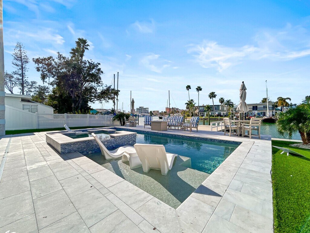 Just steps from Johns Pass and the beach, this exceptional waterfront home offers what may be the best location in all of Madeira Beach. Professionally designed and fully furnished by an interior design team, this residence is truly turnkey. Every detail has been thoughtfully curated, from 1000-thread-count sheets and premium coffee syrups to high-end cookware, linens, and furnishings throughout. No expense was spared. The home features 5 spacious bedrooms (comfortably sleeping 12), 5 full bathrooms, a rare 4 car garage, and resort-style outdoor living complete with pool, hot tub, private dock, patio furniture, and pool loungers perfect for entertaining or relaxing after a day on the water. Available immediately with a 3-month minimum lease. Everything is included. This is limited time special pricing as this is a brand-new listing. Luxury, location, and lifestyle all in one unforgettable Madeira Beach home. Professionally managed by Real Property Management Sunshine City. Our team is happy to coordinate additional services for our tenants, including private chefs, yacht charters, golf cart rentals, and airport transportation. We ensure a seamless, white-glove experience from arrival to departure.