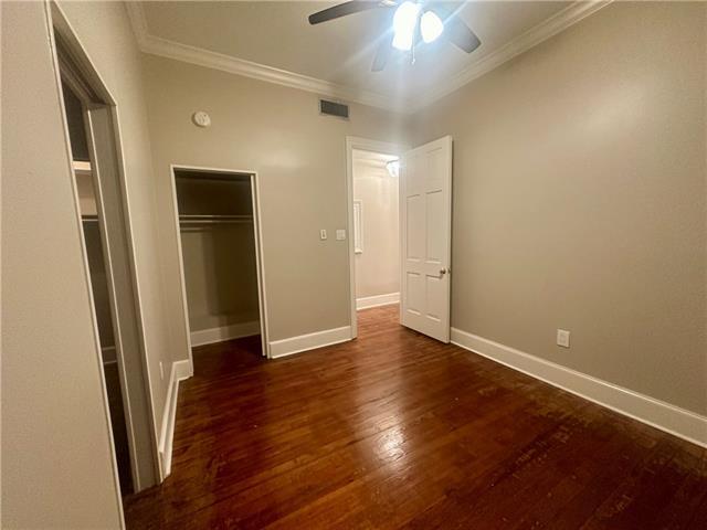 Nestled in the heart of the French Quarter, this elegant second-floor apartment offers a quintessential New Orleans experience. This residence boasts hardwood floors, crown molding, and stylish built-in mirrored shelving in the living room. The apartment includes a full kitchen, though with so many great restaurants nearby, you might not use it much. There are two independent bedrooms and two bathrooms, both quietly located in the back for added privacy. The apartment is close to popular spots like Hotel Monteleone, Irene’s Cuisine, and French Truck Coffee, offering easy access to everything the Vieux Carré has to offer.