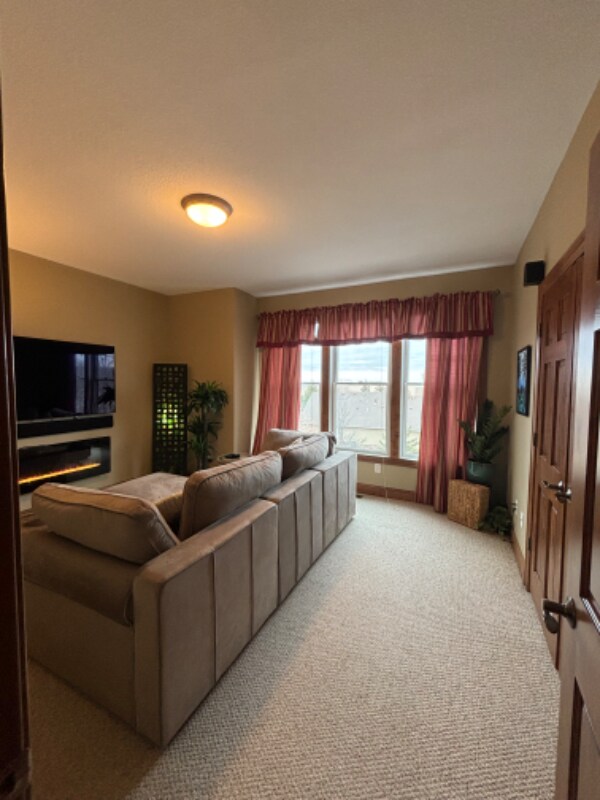 Property Id: 1418807 Location Location Location. 5 mins. walk to grocery, shopping, dining, arts in the Heart of Burnsville. Private entrance, two car garage. LARGER than a typical two bedroom apartment or single family home. Easily accommodates a family of four in its two bedrooms and 3rd “unofficial” bedroom/den/guest space. 10 foot floor to ceiling windows fill the space with light. Hardwood floors, granite countertops, modern appliances, gas fireplace, 8x20 deck with gas grill hookup and retractable awning, outdoor fire pit. Quality construction with extreme sound proofing between adjacent units assures total quiet privacy. On the upper level, the master bedroom suite with walk-in closet includes a master bath with in-floor heating, whirlpool tub for the ultimate in relaxation. The 2nd bedroom looks out with views across the rooftops to incredible sunsets. A solar tube brings in sunshine to the upper level office/laundry area. Luxury, comfort: Home. Rent to Own option available.