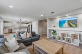 Welcome to this beautiful 3 bedroom one story house. As you walk in to the home your 1st and 2nd bedroom share a bathroom on the left and your master bedroom is privately located on the right side. The bonus room can be used as a 4th bedroom. You are welcomed by a large hallway that leads you into the living room and then the SPACIOUS family room/dinning area/kitchen combo. The open concept is perfect for entertaining your guests and family. Opening the sliding doors leads you to a beautiful screened pool where you can sit and enjoy Florida's everyday magical sunsets. The house is located in a very desirable complex on US 27,Four Corners. This newly developing area is very close to all major roads,shopping,restaurants and all the Disney parks and entertainment venues. Short Term and Long Term rental allowed MLS# O6338503