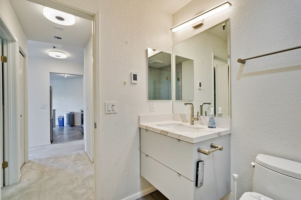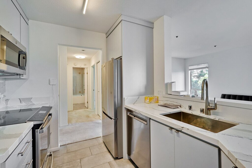 Opportunity to live in a rare Mid-Century Modern Condo building in Palo Alto. Remodeled 1 bedroom 1 bath 4th floor condominium. Contemporary design includes an open plan living room, dining room and kitchen with a seamless connection to the private balcony creating an intimate space for relaxing. Gorgeous kitchen with all stainless steel appliances The spacious bedroom offers a large double closet Beautifully remodeled bathroom features a heated floor, and a modern, large shower/soaking tub combination. A/c and heat Completing the unit is the added bonus of an in-unit washer and dryer. 1 designated parking spot in gated parking garage Rent includes water, sewer, garbage and recycling Tenant pays all other utilities This ideal location is just steps to top California Ave with shopping, restaurants, weekend farmers market, and CalTrain. Easy access to Stanford and major commute routes. Now Including Latchel Concierge Service! $30 monthly plus rent - 60-second maintenance phone response times - 24/7/365 assistance - Live video chat troubleshooting - Up to *$1,000 in reimbursements annually (protecting your security deposit!) - $50 towards Accidental Lockout reimbursements - Citizen Home Solutions to assist in connecting utilities, internet, TV, etc. upon move-in - Special Resident Deals on other services - and MORE! *All benefits are subject to change at any time. This condo is a must-see! Text/email Rosemary Handa to schedule a showing Apply online at
