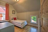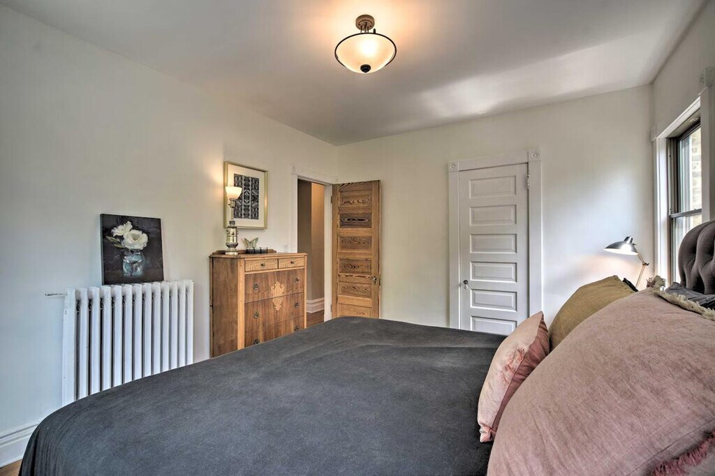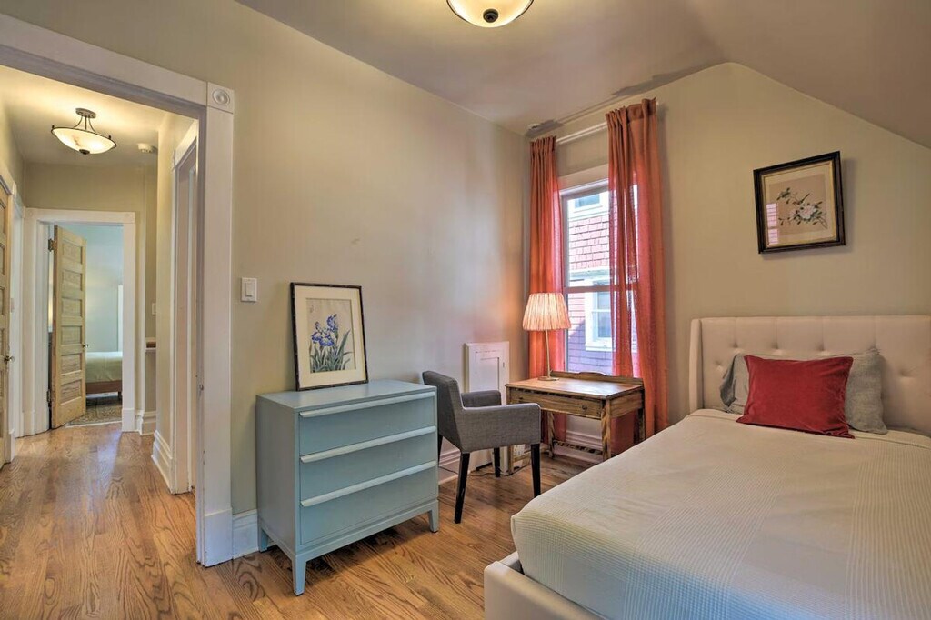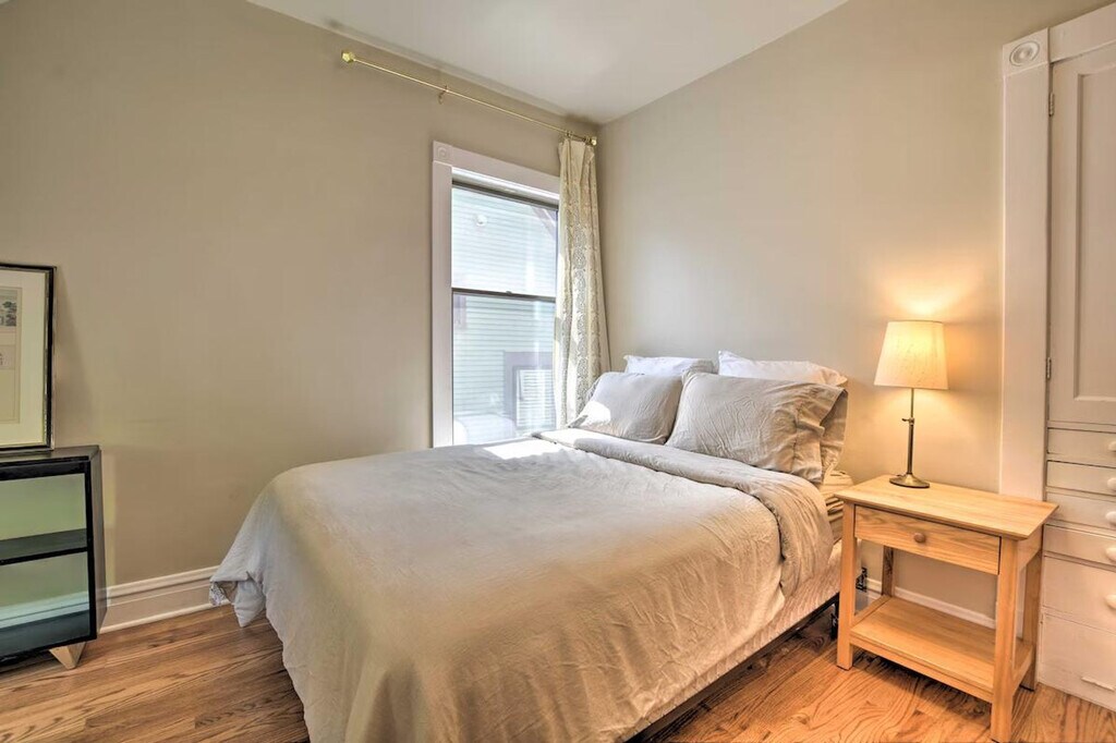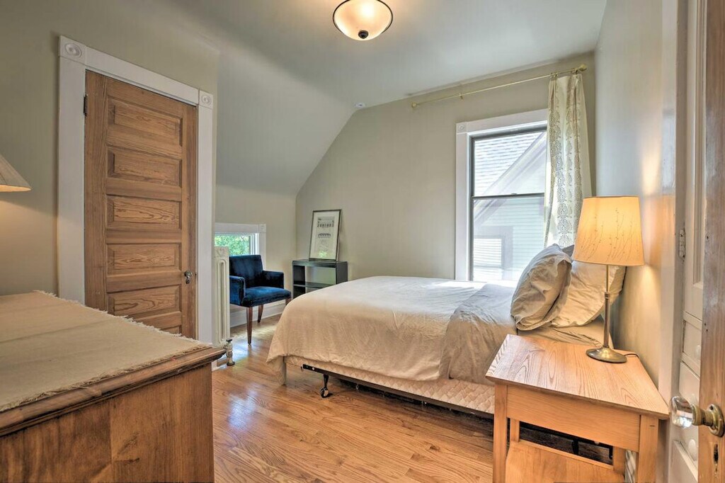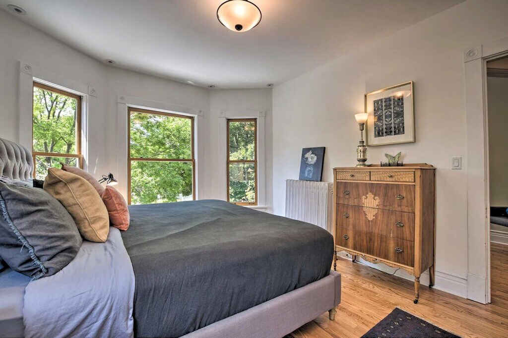 Experience the best of Chicago from this 4-bedroom, 1.5-bathroom home located in the Frank Lloyd Wright Historic District. Feel at home in this classic vacation rental, where you'll be within walking distance of coffee shops, restaurants, and parks. Explore nearby attractions like Ernest Hemingway's Birthplace Museum or venture into the city to visit Millennium Park and Wrigley Field. This apartment offers a variety of sleeping arrangements, including a king bed, two twin beds, a queen bed, and a full sleeper sofa in the sunroom. Enjoy indoor amenities such as a smart TV, fireplace, dining area, and ceiling fans. The fully equipped kitchen includes cooking basics, a microwave, toaster oven, Grind & Brew drip coffee maker, crockpot, dishware, flatware, ice maker, filtered water pitcher, and spices. Outdoor living is enhanced by a private backyard with a gas grill and dining area. Parking is available in the garage for one vehicle, and paid street parking is also an option. Situated in a walkable neighborhood, this home provides easy access to shopping and dining options. Public transportation is readily available, making it convenient to explore the city's popular attractions. The property requires stairs to enter and access all bedrooms, which may be difficult for guests with limited mobility. Guests will have access to the entire property via self check-in. Smoking, pets, events, parties, and large gatherings are not allowed. The driveway is shared with the neighbor, so please only park one vehicle in the garage as driveway parking is not available for guest use. The apartment includes free high-speed WiFi, making it easy to work from home if needed. [SI]