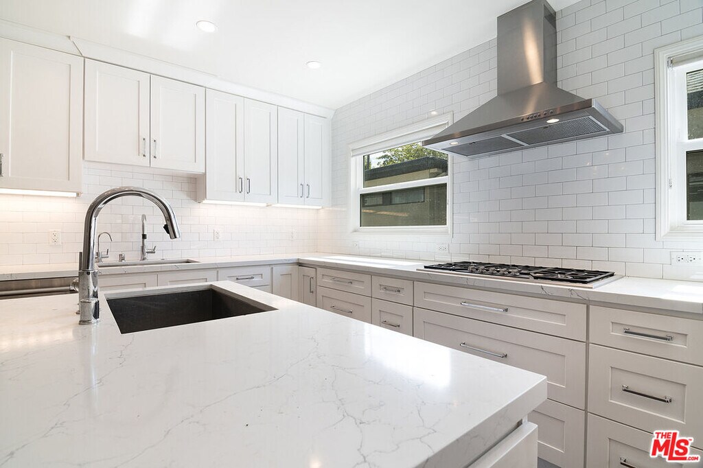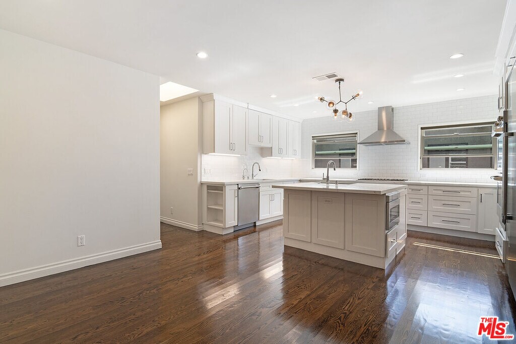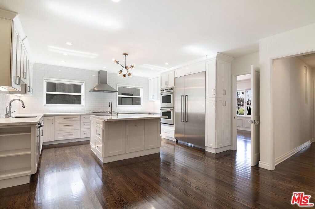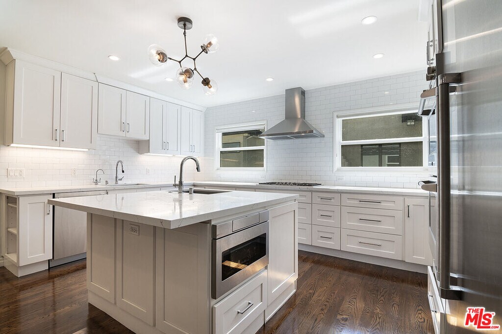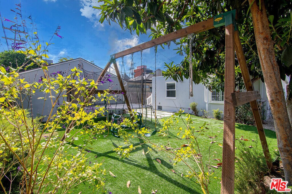 Traditional single story with 4 beds + 3 baths + large remodeled kitchen + private grassy yard on quiet tree lined street close to The Grove. Long driveway for off street parking and covered front porch at the entrance. Formal entry opens to living, dining, and hallway to bedrooms. Living room with fireplace, picture window to the street, and built in bookcases. Dining room with character molding and large windows that pool sunshine. Huge remodeled kitchen with center island, oversized fridge/freezer, double wall ovens, double sinks, double dishwashers, abundant cabinets and countertop space. Primary bedroom suite overlooks yard and has double vanity, separate shower + tub, walk-in closet with built-ins. 3 additional beds + 2 baths. Laundry room opens to the private grassy yard. Hardwood floors, central HVAC, recessed lights. Just a stone's throw from The Grove, Pan Pacific Park, shops, restaurants, local attractions! Amazing opportunity!!! MLS# 25571055