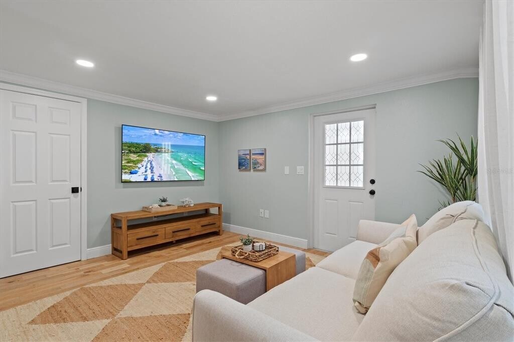 Welcome to Casa Limon! A freshly renovated designer pool home with tons of natural light,a coastal contemporary vibe,& a location that is walkable to Downtown Sarasota,Payne Park,& the Legacy Bike Trail. Comfortable for groups of up to 8 people featuring 4 beds,2 baths,a heated pebble pool,open floor plan,inside laundry,chef's kitchen,dedicated work space,fenced yard w/ tropical landscaping & all of the luxury touches you'd find in a boutique hotel but in a private cottage setting. ****Please note the outdoor kitchen area is currently under construction and will be completed on or before March 1st. The photos will be updated at that time with new photos that show the outdoor kitchen,furniture,uplighting and some other accessories not yet shown in the photos. Upon entering the home using your assigned unique access code on the front door keypad you will be welcomed by all of the open space and natural light that floods this house. A foyer area with hooks for your bags and keys is immediately to your left. Directly in front of the foyer is the designer kitchen with stainless steel appliances and breakfast bar. To your right is a coastal contemporary dining table with 6 chairs but room for 8 if needed. The dining area can be closed off from the adjacent 4th bedroom/flex room utilizing the newly installed custom barn doors. The flex room is a slightly sunken room (4 inches below the dining room) and can be utilized as a 4th bedroom with pullout queen sleeper,a TV room or a kids hangout room. The stackable washer and dryer and supplies can be found in the closet in this flex space. Beyond the kitchen is the large open living room with 65 inch Smart TV which offers streaming services that include Amazon Video,Netflix,Hulu,ESPN+ and Disney+. The living room offers seating for up to 6 people as well as a work station that allows you to remain in the conversation. Access to the private fenced backyard,outdoor kitchen and pool can be found from this room. Next to the living room is the Master Suite which offers a King bed,private ensuite bath with double vanity sinks and walk-in shower,ample closet space and separate private access to the pool and lanai along with an entire wall of Western facing windows to watch the sunsets. On the South wing of the house are two additional bedrooms with a shared designer bathroom with walk-in shower. The front bedroom offers a King bed and the back bedroom offers a twin bed with pullout trundle. Both bedrooms offer closet space,nightstands and a dresser. The newly fenced backyard faces West and offers a heated Pebble Pool,Tropical landscaping with uplighting at night,an outdoor kitchen area with bar seating and flat screen TV to watch the games,Lounge chairs and a conversation area. Guest access You will have free rein of the entire property during your stay other than one locked owner's closet just inside the front door and the outside area behind the carport which will remain locked. MLS# A4559821