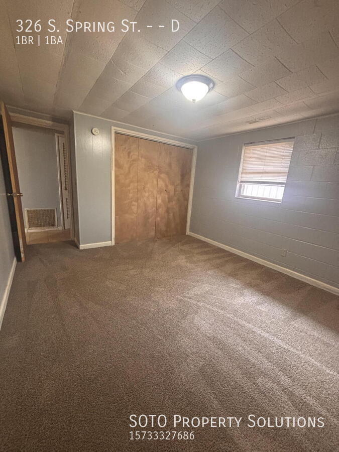 There is currently a 1 Bed 1 Bath Apartment for rent listed at 326 S Spring St. It is Available Now.
