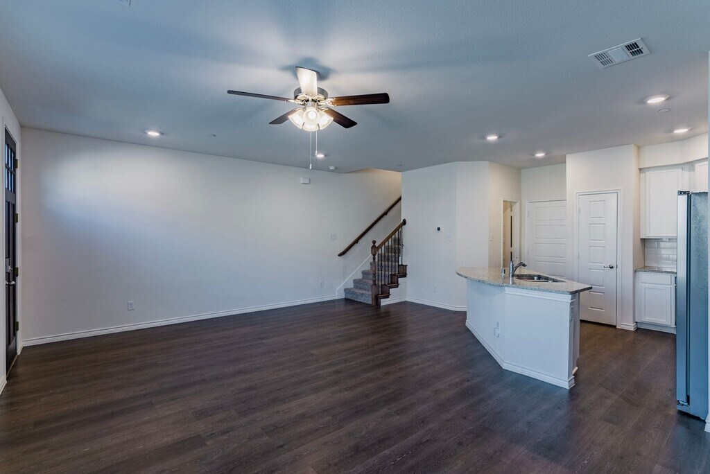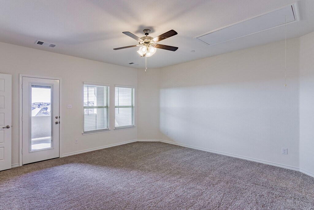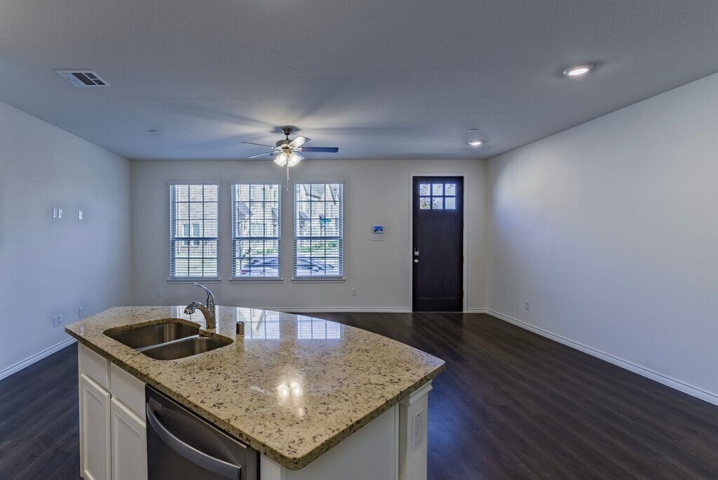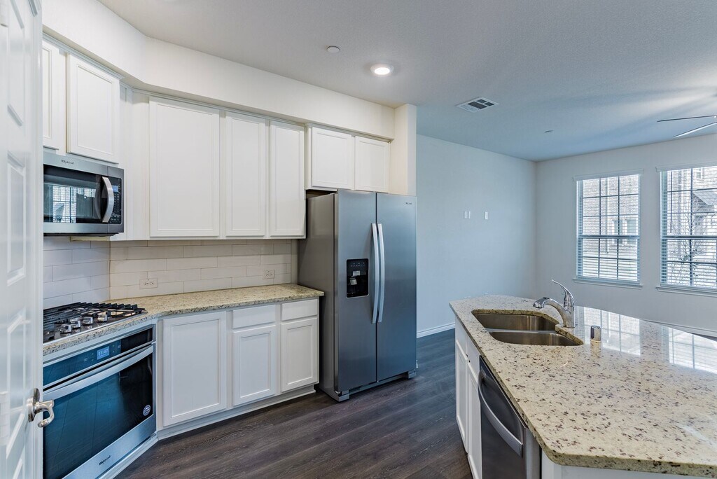 Immaculate 3 story townhome in the Windhaven Crossing Subdivision! Beautiful designed open concept plan with spacious first floor. The modern eat-in kitchen has granite countertops and all stainless-steel appliances. Second floor has the large master suite with a private bathroom, a huge soaking tub and separate shower, there are also 2 additional bedrooms with a full bathroom and full-size washer and dryer. On the third floor you will find an oversized private balcony attached to a flex room, which can be used as game room or the 4th bedroom. 2 car garage with epoxy flooring completes this amazing home. This property will not last long, so call Real Property Management Lakeview to schedule a showing.