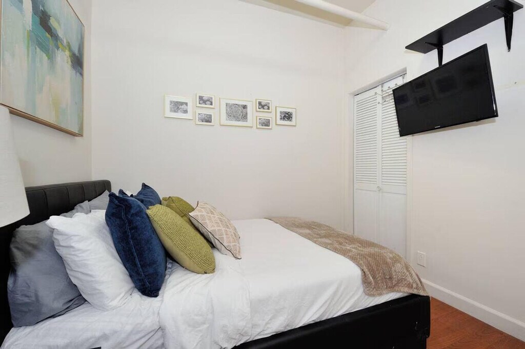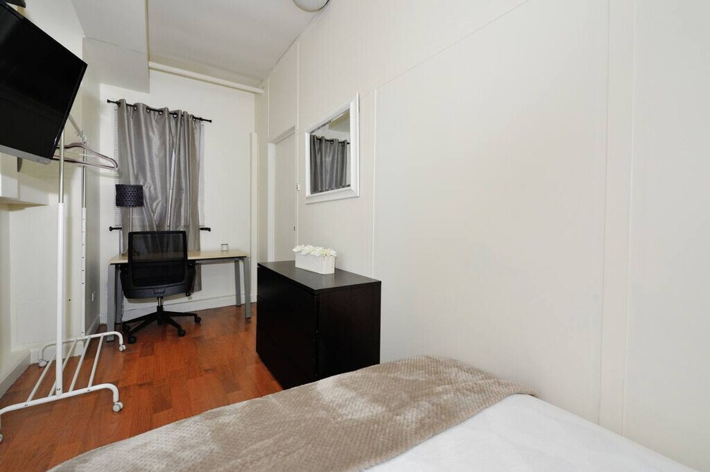 Feel at home in this charming Midtown West 4-bedroom, 1-bathroom furnished apartment. This centrally located apartment is on the first floor of a classic NYC building, just up one flight of stairs. Inside, you'll find four comfortable bedrooms, a nice sofa in the living room to relax on, and a dining table for four to enjoy meals together. Wi-Fi is all set up. You can walk to many great places like restaurants, bars, the Hudson River, Times Square, and Chelsea. If you need to work, there's a desk ready for you.