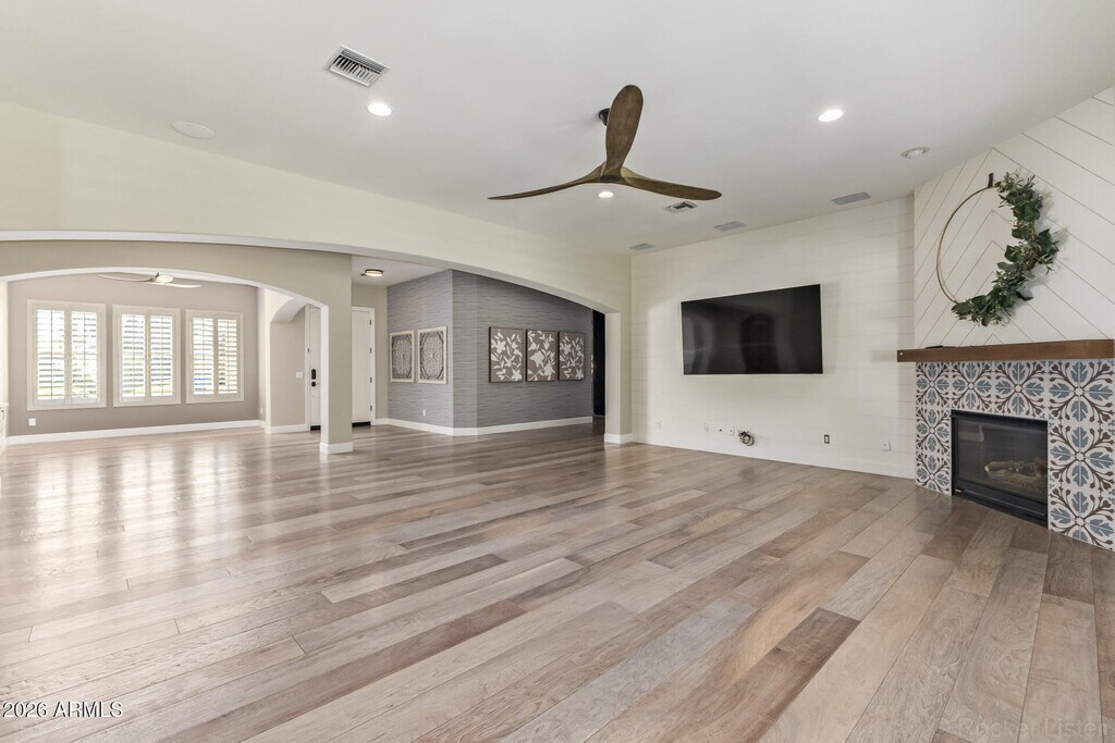 Thoughtfully designed with comfort and functionality in mind,this beautiful home offers true living at its finest. Tucked away in a quiet cul-de-sac with north/south exposure,it features charming curb appeal,a private lush backyard with a diving pool,a two-car garage,and an RV gate. Inside,the inviting layout is both bright and open,showcasing wood floors,plantation shutters,built-in bookshelves,arched passageways,stylish accent walls,double washer and dryer,and a cozy fireplace. The chef's kitchen is a dream--complete with abundant cabinetry,granite countertops,built-in appliances,and a distinctive T-shaped island ideal for entertaining. Retreat to the spacious primary suite,featuring a walk-in closet and a spa-inspired bathroom with dual sinks,a soaking tub,and shower. an office. Out back,you'll have an expansive covered patio with pavers,perfect for weekend grills and morning coffee,a large grass area ideal for a playground,a gazebo for fun gatherings,and a refreshing pool with a diving board! Hurry up! You don't want to miss it!