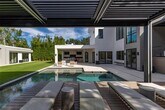 On the shores of Lake Sue,this fully furnished mid-century modern residence offers a rare lease opportunity blending architectural heritage with 21st-century innovation. Extensively remodeled by E2 Homes and completed in 2021,the home was originally designed by architect Roger Allen Leibin and reimagined as the award-winning New American Home Remodel. Showcasing cubed structural elements and serene lake views from each floor,the residence encompasses 6,709 square feet under air with a four-bedroom main house and a two-bedroom detached guesthouse. There are seven full baths and two half baths throughout the property. The open floor plan flows seamlessly to the outdoors,creating an effortless environment for gathering and entertaining. The gourmet kitchen features a spacious center island and professional-grade appliances. The owners’ suite is positioned to overlook the lake,offering a boutique-style dressing room and spa-like bath. Additional interior appointments include a glass wine cellar,wet bar and fireplace. Achieving a net-zero energy rating,the property is platinum-certified NGBS Emerald,DOE Zero Energy Ready,Indoor airPLUS qualified,Energy Star-certified and LEED Platinum certified. The newly added 875-square-foot cabana features a bedroom,two baths,full kitchen,home office or optional second bedroom,and a private dance or yoga studio. Outdoor amenities include a shimmering pool and spa,splash pad,gourmet summer kitchen,lanai and a private lakefront with dock,boat lift and dedicated waterfront lounge space. Monthly lease includes furnishings,all utilities,pool and yard maintenance,internet and streaming services and routine cleaning. No pets or smoking permitted. Please inquire for availability and additional terms. MLS# O6343280