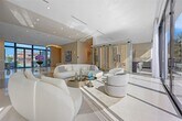 Introducing a rare ultra-luxury waterfront home within the gated Eastern Shores community. This fully furnished Artefacto-designed property offers four bedrooms and four and a half bathrooms, plus maid’s quarters with a full bathroom, across approximately 5,500 SF of refined modern living space. Dramatic 14-foot ceilings, elegant marble flooring, and private elevator access define the residence, enhanced by a glass-enclosed wine display and custom bar. The home is equipped with advanced smart home technology and a whole-home SONOS audio system for seamless living and entertainment. The primary suite is a private haven, featuring a spa-style bathroom, outdoor sauna, and private balcony. Thoughtfully designed bathrooms include premium smart toilets throughout. Designed for effortless indoor-outdoor living, the property showcases a rooftop terrace with sweeping water views, a resort-style pool, and a fully equipped summer kitchen ideal for entertaining. An 80-foot private dock provides direct access to the Intracoastal and Atlantic Ocean. Offered turnkey and impeccably furnished, this is an exceptional opportunity to experience elevated waterfront living.