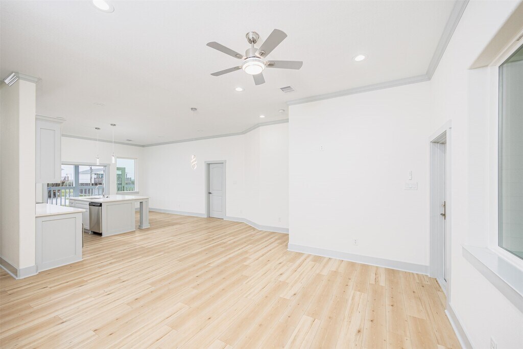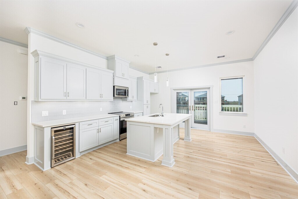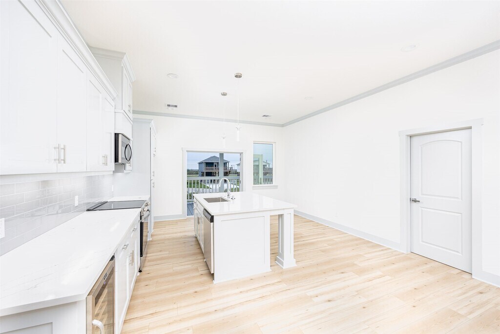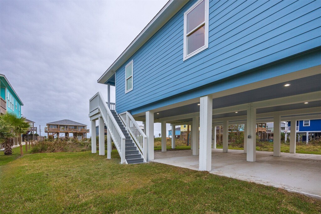 Walking distance to the beach on Bolivar Peninsula,this elevated coastal home offers front and rear balconies and generous covered space beneath the house for parking and outdoor living. Inside,vinyl plank flooring runs throughout for easy maintenance. The kitchen features Corian countertops,42-inch cabinets,stainless steel appliances,and a wine cooler,with double doors opening to the rear balcony for effortless indoor-outdoor flow. Natural light fills the living areas and high ceilings keep the space open and airy. The primary suite includes an upgraded bath and walk-in closet,and all three full bathrooms are finished with quality touches,including a floor-to-ceiling tiled shower in the third bath. Washer,dryer,refrigerator,and one TV are included. Comfortable,well-built,and a short walk to the sand. MLS# 36016197