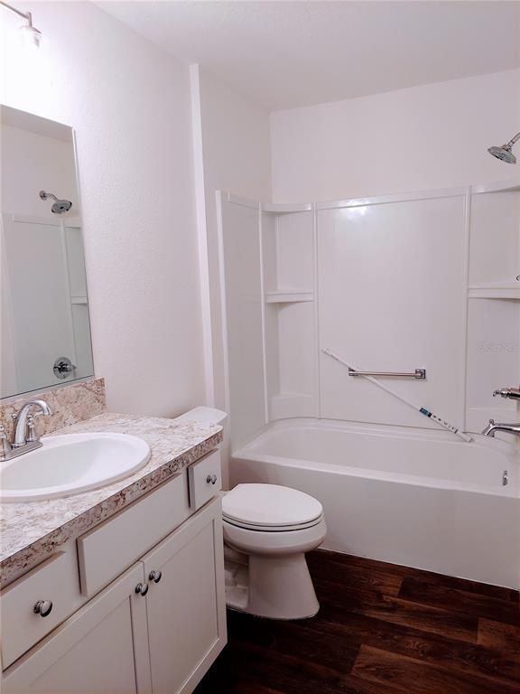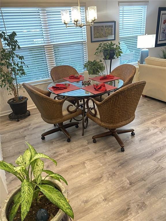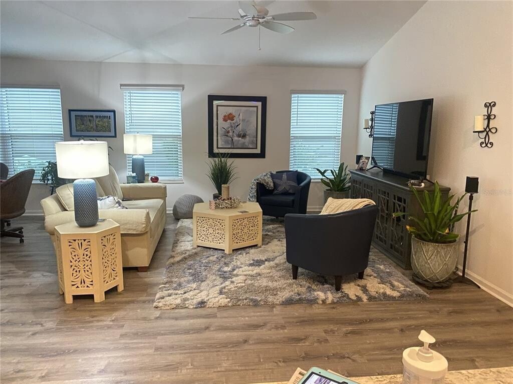 Village of Deluna! New LVP floors throughout. Perfect Emerald Patio Villa with one car garage and separate golf cart garage. Screened front lanai with ceiling fan is ideal for outdoor dining and relaxing. Open living area provides great flow through the living,dining and kitchen areas! Island kitchen has plenty of storage,built in desk,stainless appliances and inside laundry. Primary suite includes large bedroom and ensuite bath with walk in shower,double sinks and linen closet. Guest room has wall closet and is adjacent to guest bath with tub/shower combo. White cabinetry in kitchen and both bathrooms keep everything light and bright! Available April 2026. MLS# G5108228