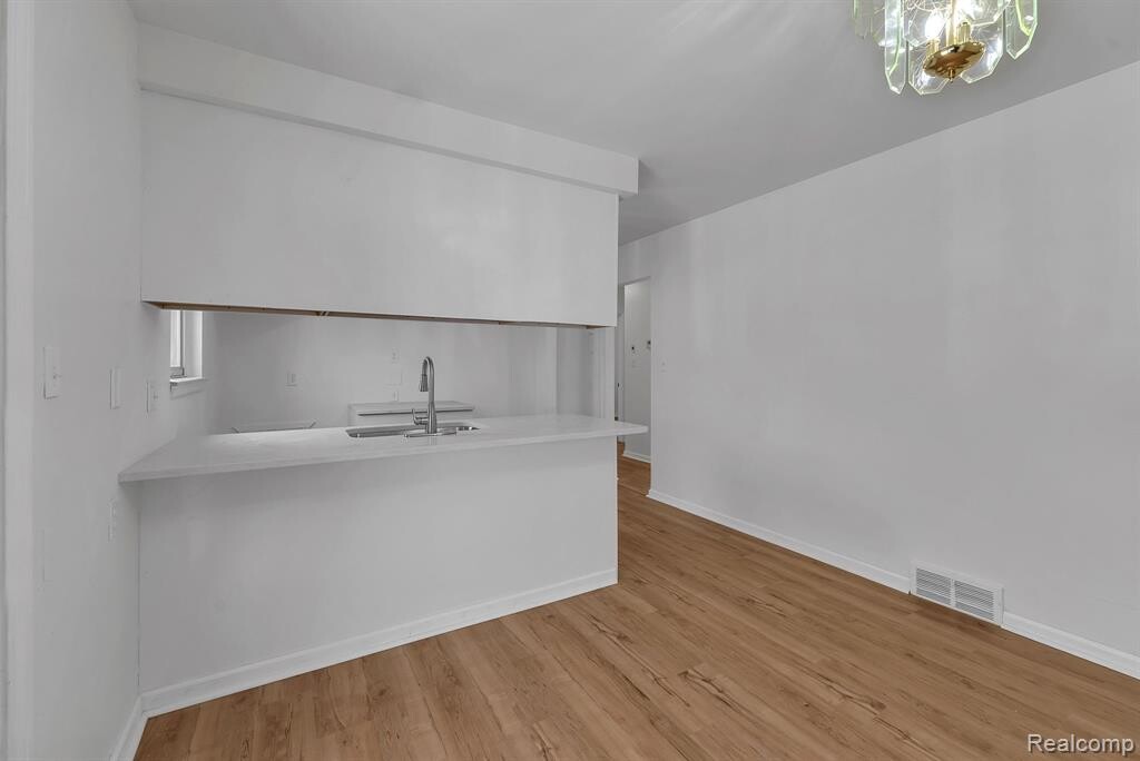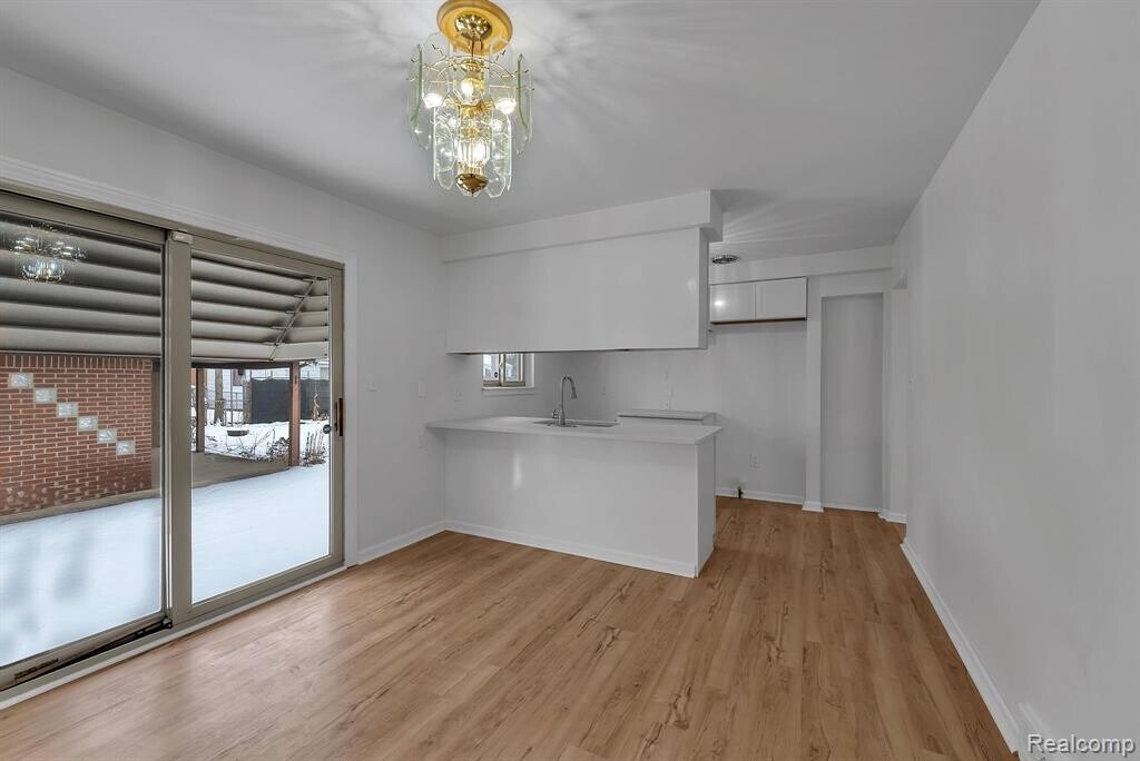 Welcome to this beautifully updated brick ranch in Garden City, completely renovated in 2025 and offering nearly 1,900 sq ft of finished living space including a fully finished basement. This move-in-ready home features 3 bedrooms and 1.5 bathrooms, fresh neutral paint, new light wood-style flooring throughout, recessed and updated lighting, and an inviting layout perfect for modern living. The bright kitchen showcases white cabinetry, light stone countertops, a peninsula for added seating and workspace, and flows seamlessly into the dining area—ideal for entertaining. The main floor bedrooms are generously sized with ceiling fans and ample closet space, while the updated full bathroom includes a glass-door tub/shower combination and modern vanity. Downstairs, the finished basement adds approximately 800 sq ft of additional living space, complete with wood-style floors, a half bath, laundry area, and plenty of room for a family room, home office, or workout space. Outside, enjoy the low-maintenance brick exterior, covered front porch, fenced backyard, patio, and a hard-to-find 2.5-car detached garage with driveway parking. Located near Cherry Hill and Venoy, close to shopping, dining, schools, and parks, this home combines quality updates, functional space, and excellent value. Schedule your showing today—this Garden City gem won’t last!