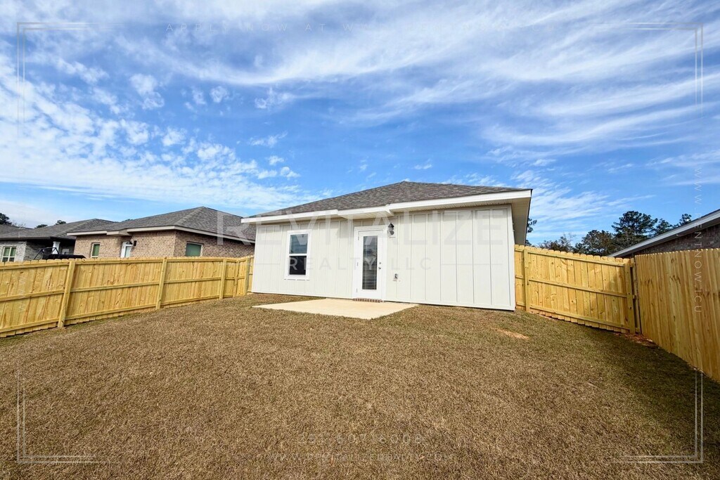 ***Get $100 OFF your First 3 Months of Rent!*** Welcome to this new construction 4-bedroom, 2-bathroom home located in the desirable Revere at Independence in Spanish Fort. This modern craftsman cottage-style home is the Camilla floorplan, which offers a great open concept main living area and is built to Golf Fortified standards.. The home features a fenced backyard, 9-foot ceilings, luxury vinyl plank flooring, and granite counertops throughout. The kitchen is outfitted with stainless steel appliances, which include a refrigerator, dishwasher, gas range, and microwave; and overlooks the dining area and great room, which leads out to the outdoor patio. Across from the kitchen is a separate, dedicated laundry space with a washer and dryer set provided. The split bedroom plan ensures just the right amount of privacy. Enter the primary suite from the living room and find a walk-in closet and an ensuite bathroom with a walk-in shower. The other 3 bedrooms are located on the front side of the home, with the second bathroom featureing a linen closet between the first 2 bedrooms. The paved driveway leads to an attached single-car garage, providing additional parking and storage space. Front door features an electronic keypad to operate the lock. As a bonus, there are 2 community pools which make great places to relax and cool off during the hot summer months. This home is not just a dwelling, but a lifestyle. Make it yours today! Preview the 3D floor plan here with furniture: **Please note, the images in the 3D floor plan link above are of a model home and are not of the subject proeprty.** The irresistable Revere at Independence neighborhood is perfectly situated just minutes from top-rated Spanish Fort schools, I-10, downtown Mobile, and all the dining and shopping options of Eastern Shore Centre: - 1 mile from Stonebridge Elementary School - 3 miles from Spanish Fort Middle School - 3 miles from Spanish Fort High School - 4 miles from Publix - 4.5 miles from Eastern Shore Centre - 9 miles from Meaher State Park - 4 miles from I-10 - 5.5 miles from Thomas Hospital Emergency - 10.5 miles from Bayfront Park - 15.5 miles from Buc-ee's - 17 miles from Downtown Mobile - 17 miles from Downtown Fairhope For more information or to schedule a viewing, please call . You may apply at: **Affordable Housing vouchers are NOT accepted** Rent: $2,400 (Only $2,300/mo for the first 3 months) Security Deposit: $2,400 Application Fee: $75 (per applicant, non-refundable) Administration Fee: $100 (due upon lease signing) Pets: $300 non-refundable pet fee (per pet with Owner approval, up to 2 pets) Tenants are responsible for power, water, sewer, trash, gas, and yard care. Disclaimer: Any lease commencing between the present date and February 28, 2026, will include a minimum term ending on or after February 28, 2027. Please inquire for additional details. All Revitalize Realty residents are enrolled in the Resident Benefits Package (RBP) for $35/month which includes liability insurance, credit building to help boost the resident’s credit score with timely rent payments, HVAC air filter delivery (for applicable properties), move-in concierge service making utility connection and home service setup a breeze during your move-in, our best-in-class resident rewards program, and much more! More details upon application. Residents will have access to the Online Portal by AppFolio, an easy, fast, and secure way to pay charges online, view payment history, and submit maintenance requests. Access your Online Portal from any mobile device by downloading the mobile app from the App Store or Google Play. All adult residents (18+) must be on the lease and are required to submit an application. Minimum requirements are 620+ credit score, verifiable income of 3x the rent or more, and must pass a background check. No exceptions. **Approval is at the discretion of the Landlord or Property Manager.** Managed by Revitalize Realty, LLC7