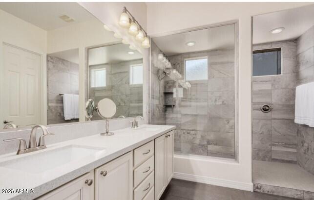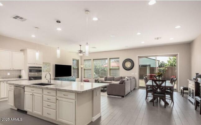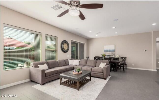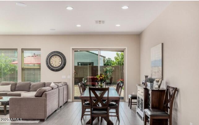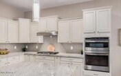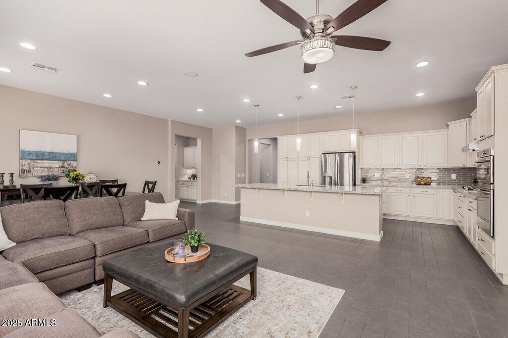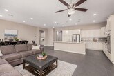 Gorgeous move in ready Shea home is offering 5 bedrooms (one without a closet) and 3 baths. Designed for modern living,the open-concept layout features fresh paint,a split floorplan,and thoughtful upgrades throughout. The chef's kitchen impresses with granite countertops,stainless steel appliances,gas cooktop,double ovens,custom cabinetry,and a spacious island perfect for gathering. The primary suite is a true retreat with an oversized custom tile and glass shower,dual vanities,and walk-in closet. Step outside to enjoy easy-care turf,raised garden beds,citrus trees,rose bushes,and an extended paver patio ideal for outdoor entertaining.