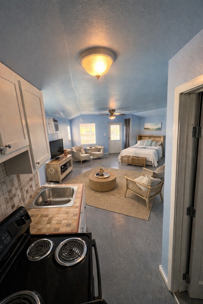 Charming coastal tiny barndominium offering 364 sq. ft. of thoughtfully designed living space on the Sunny San Leon Peninsula. This open-concept home blends barn-inspired character with modern coastal comfort,featuring high ceilings,abundant natural light,and durable,low-maintenance finishes ideal for coastal living. Enjoy refreshing breezes off Galveston Bay,enhancing the relaxed seaside atmosphere. A small private deck provides the perfect spot for morning coffee or unwinding with evening beverages. Designed for indoor-outdoor living,the exterior space can be styled as an extension of the home for comfortable daily living. This unique property offers efficiency,charm,and peaceful coastal living in a compact footprint. Electric,water,and lawn maintenance included. MLS# 45005477